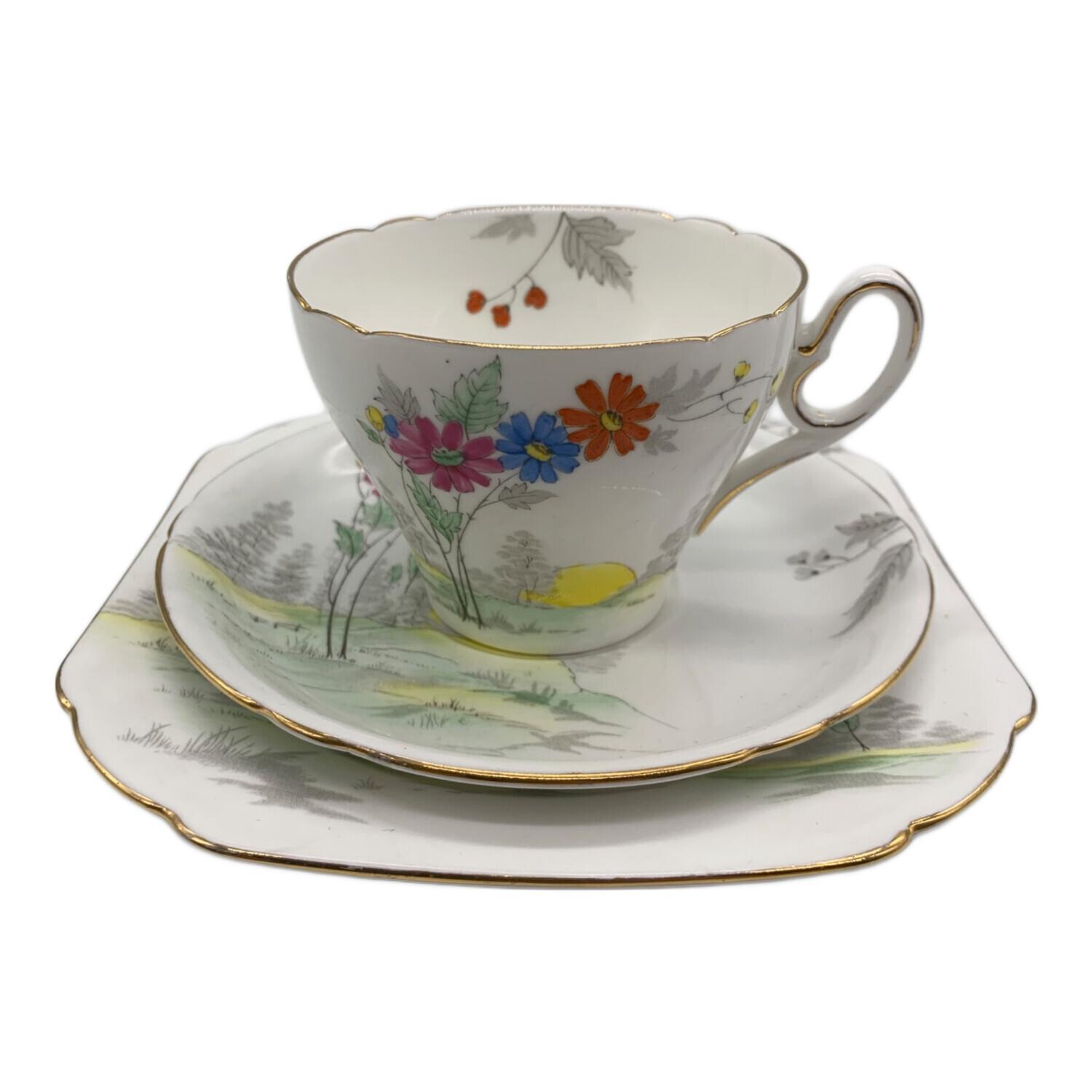 SHELLEY (シェリー) カップ&ソーサー&プレートセット ホワイト 花柄 イングランド製