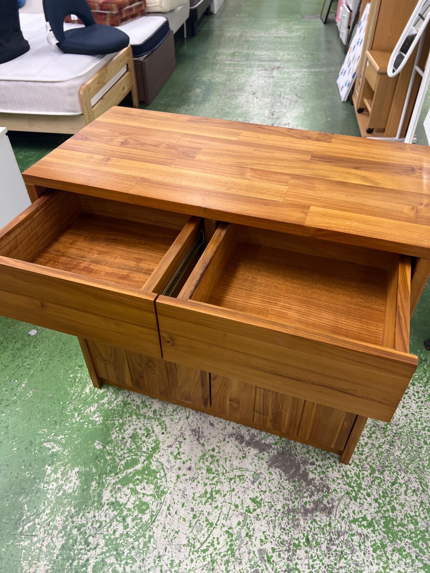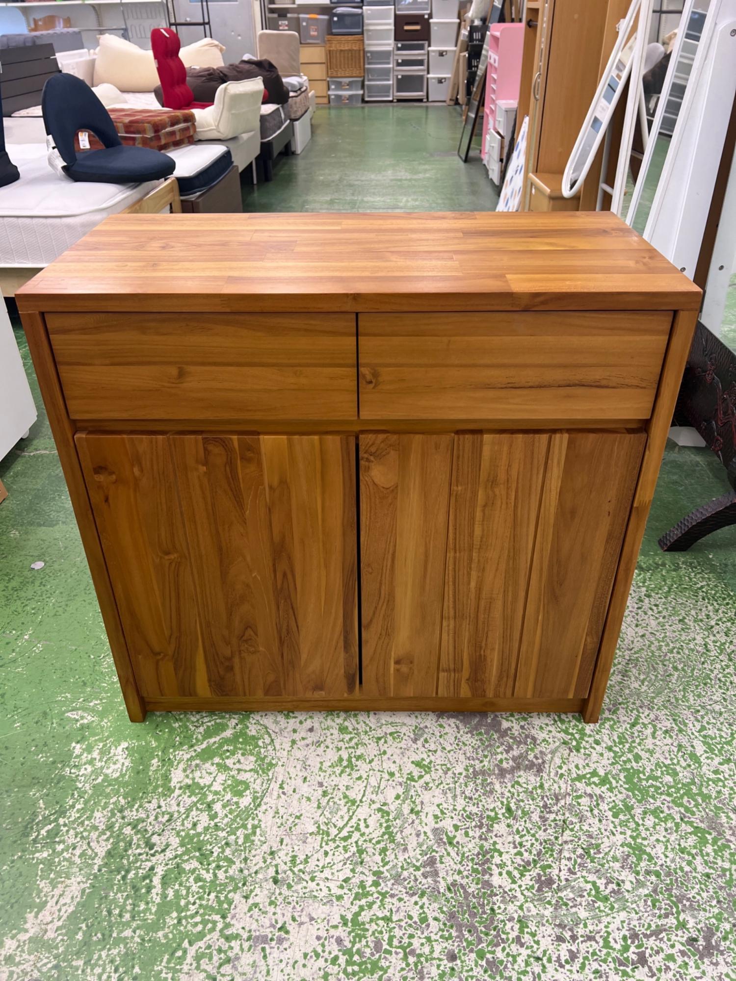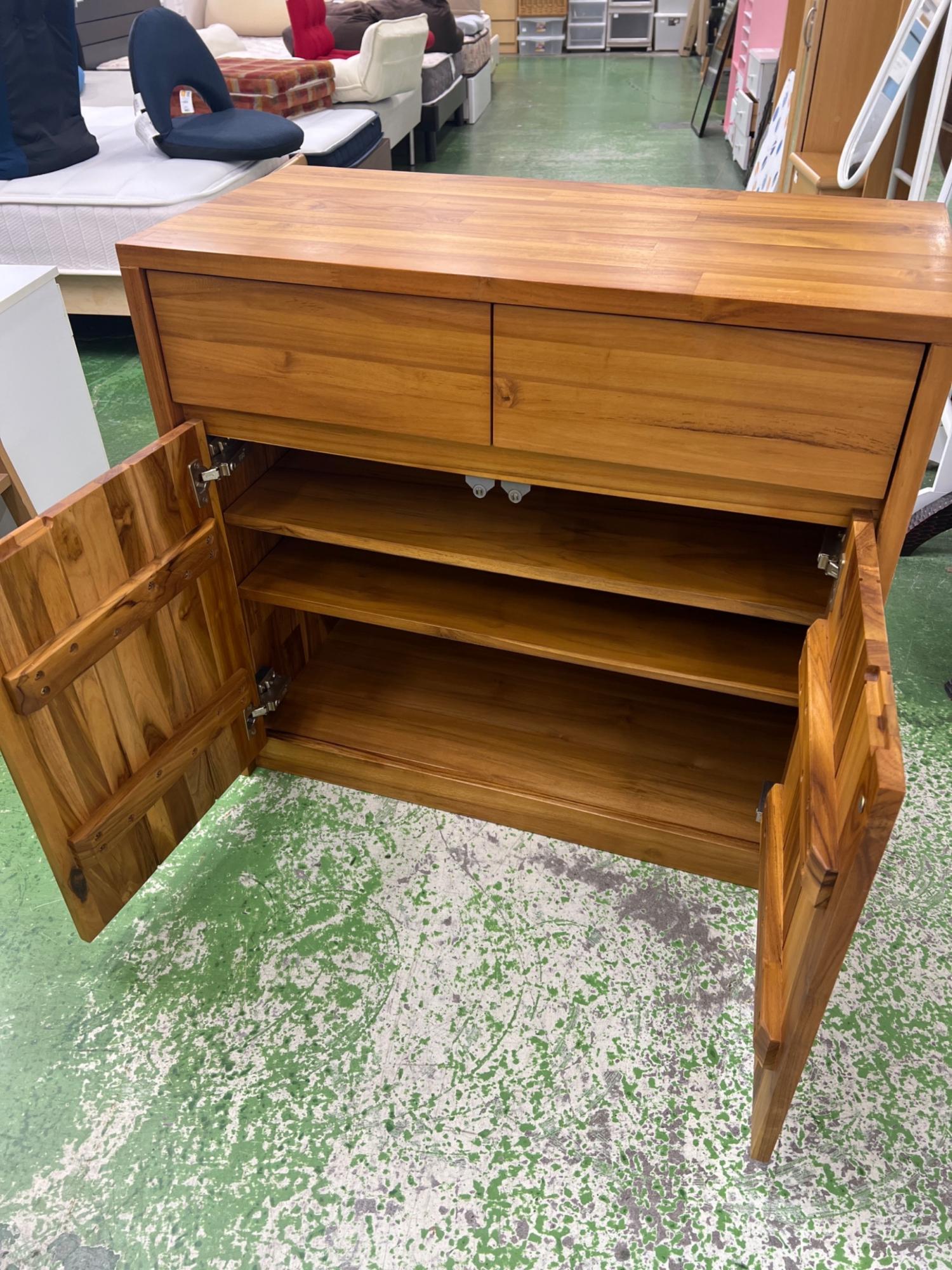 UNICO (ウニコ) キャビネット ライトブラウン 273 引き出し付き 2枚扉 チーク材 BREATH