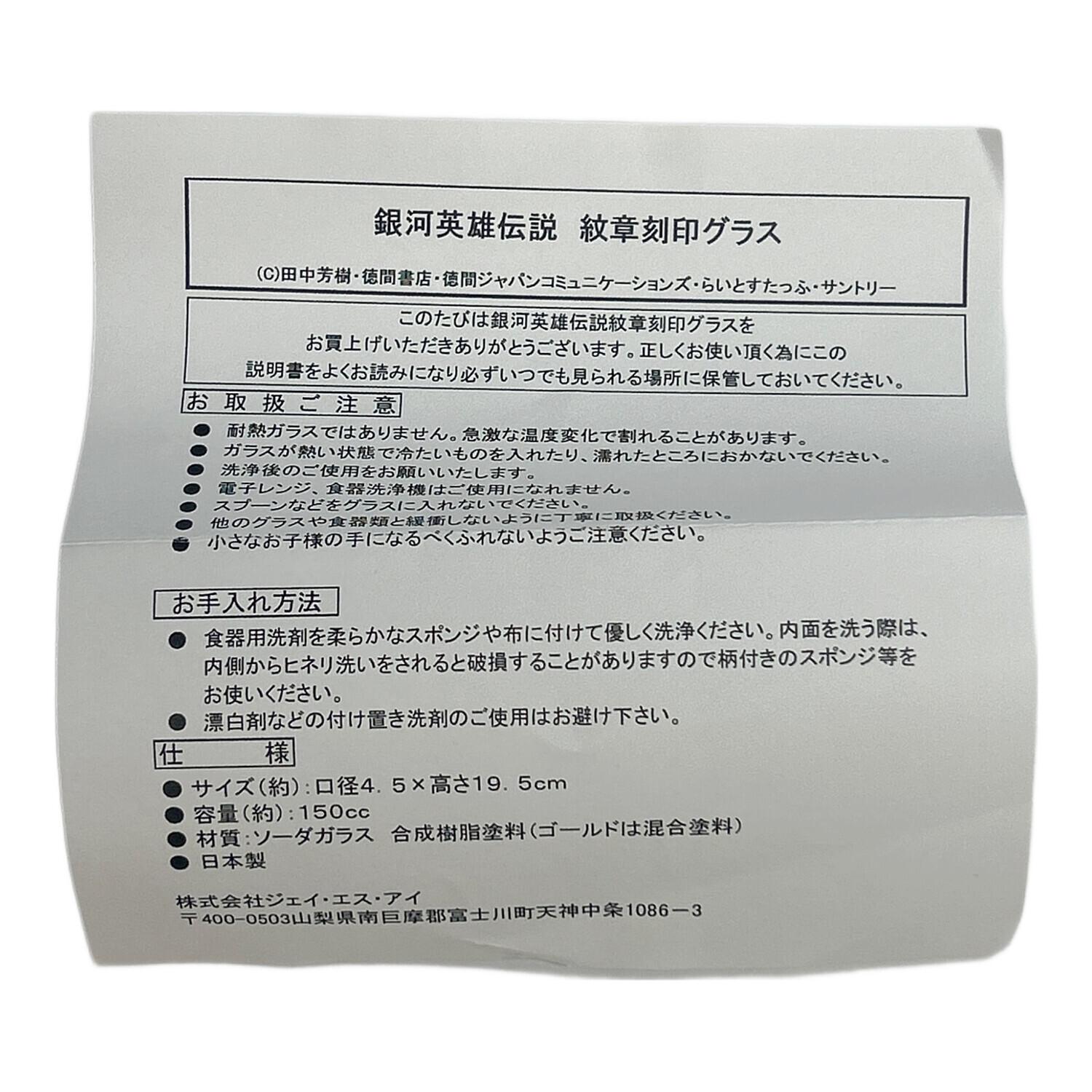 銀河英雄伝説 (ギンガエイユウデンセツ) シャンパングラス 紋章刻印