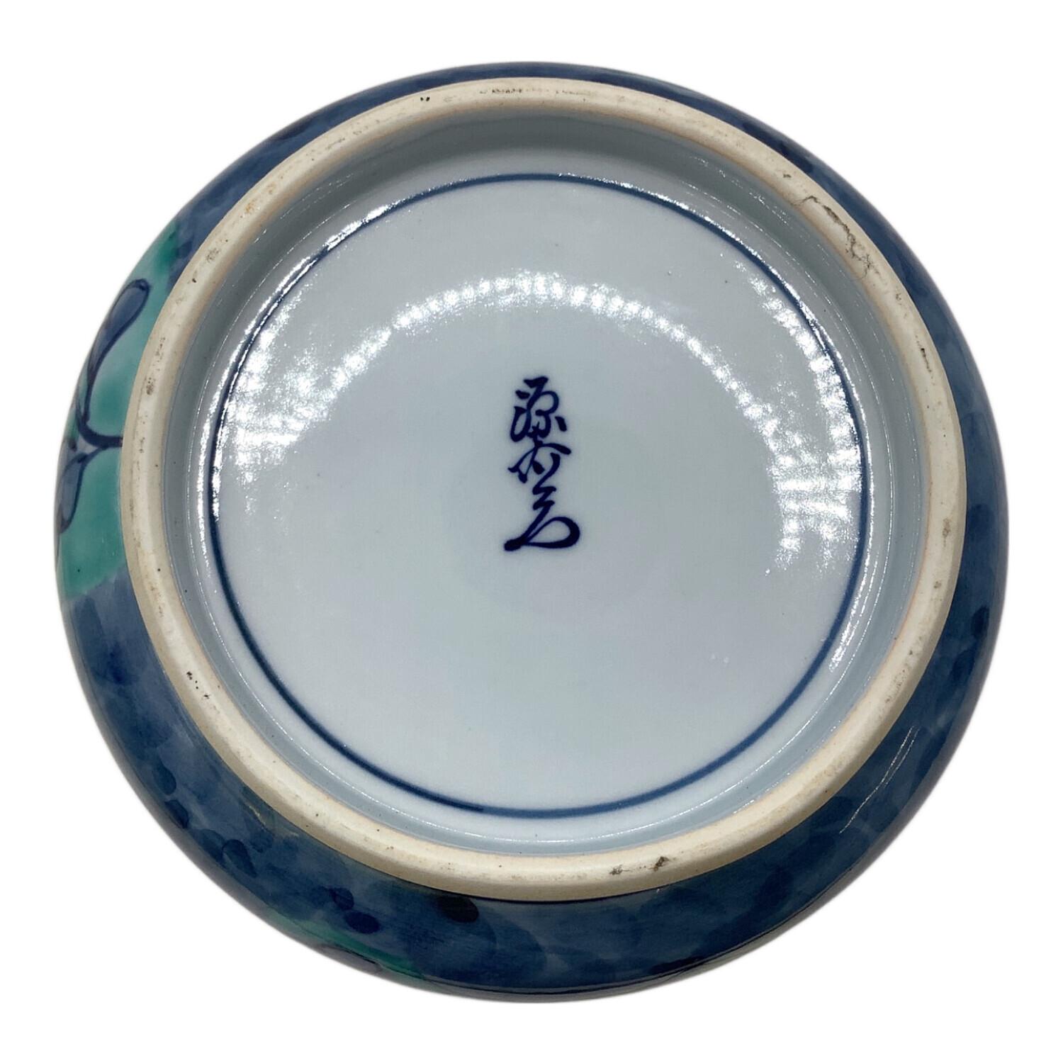 源右衛門窯造 蓋付容器 青彩菊絵蓋物