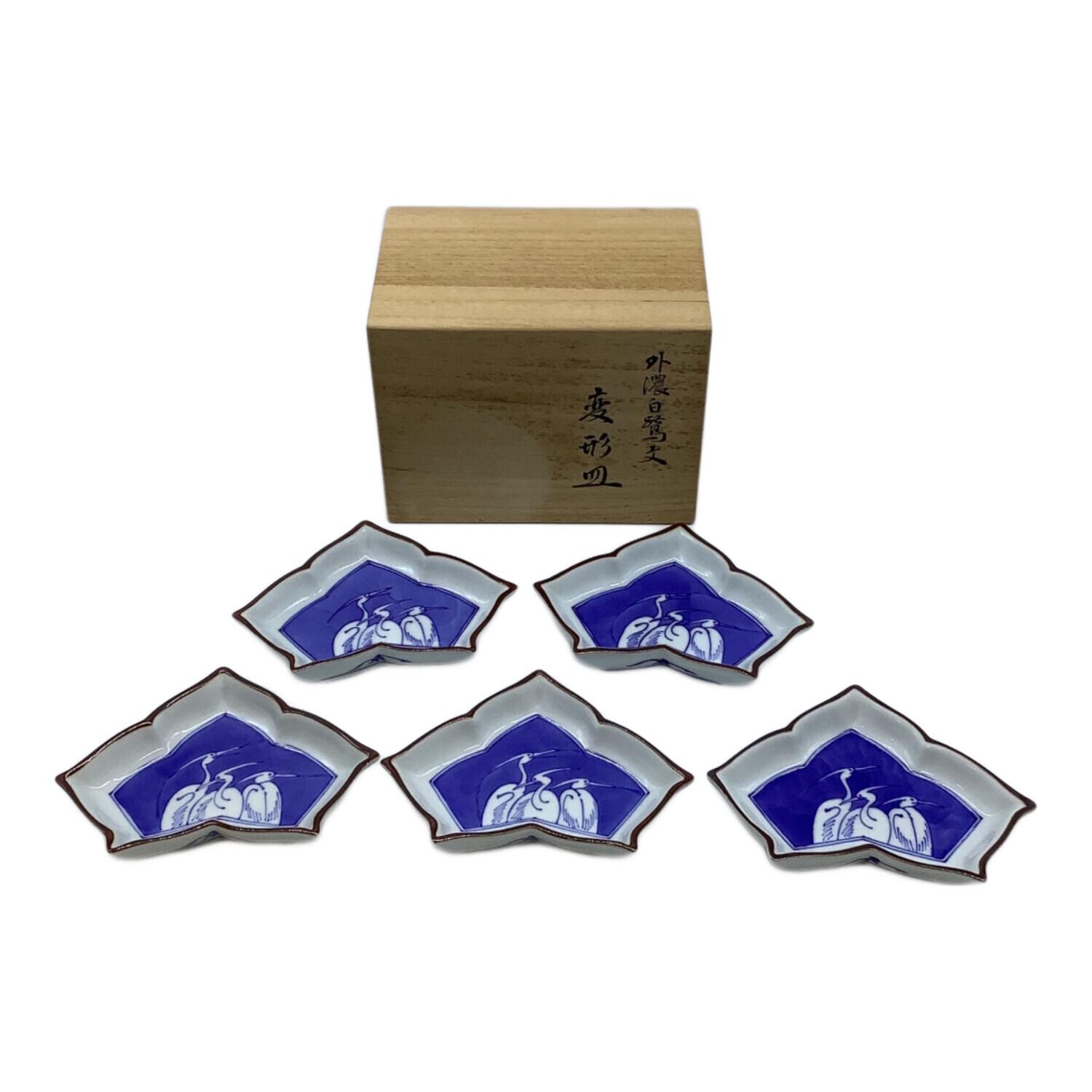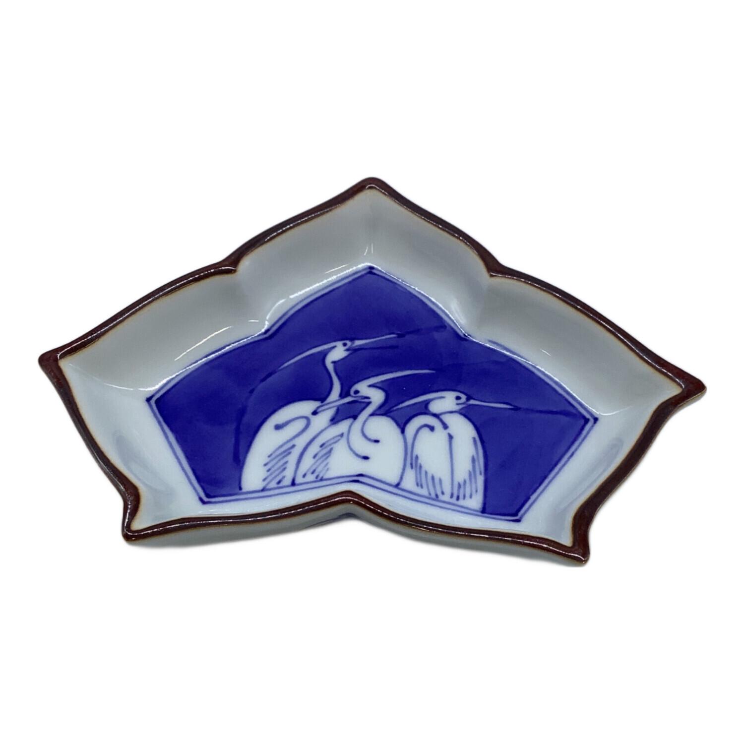 宮内庁御用達 変形皿 辻常陸製変形皿 辻精磁社 三鷺文絵変形皿