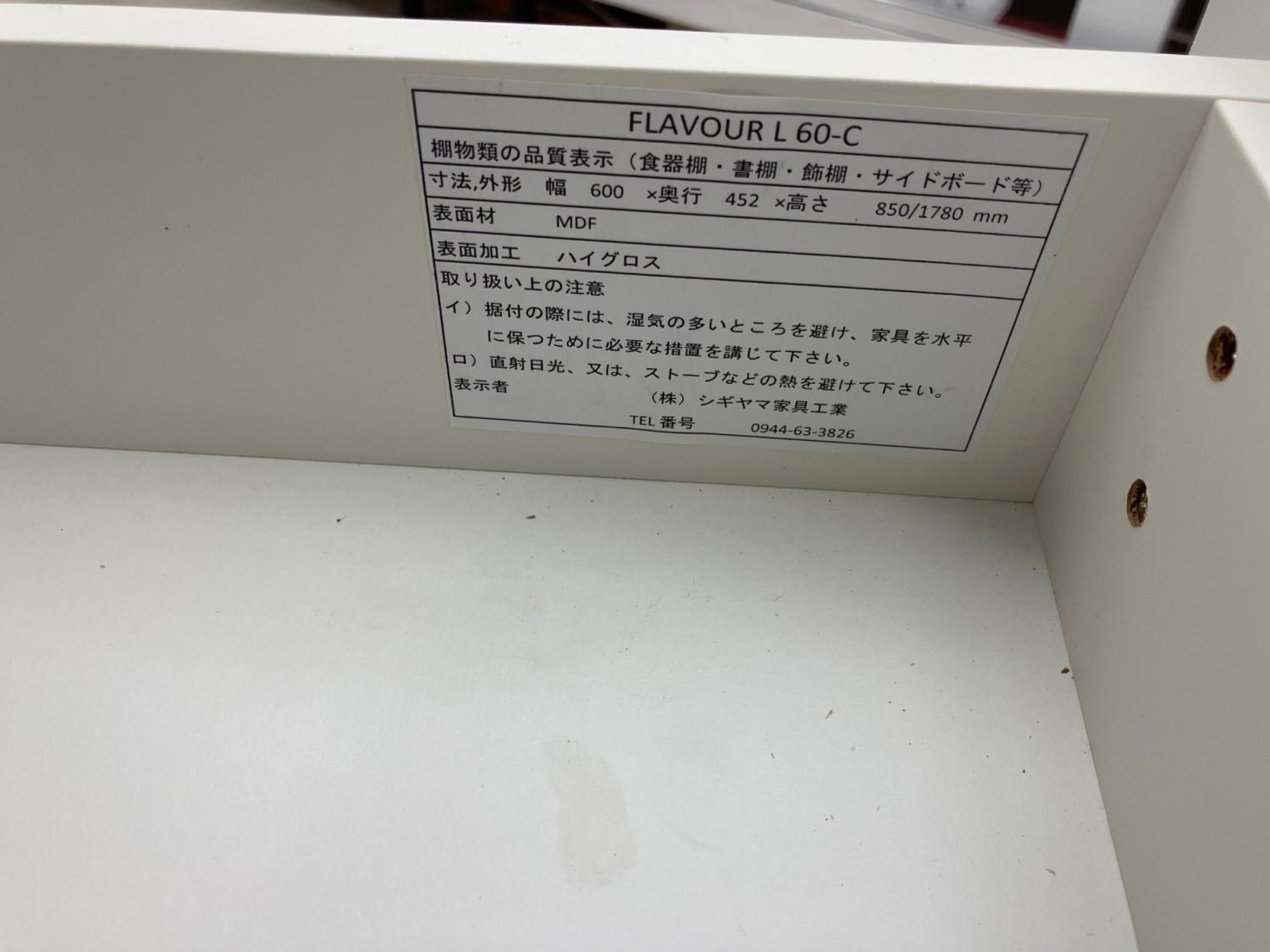 シギヤマ家具 (シギヤマカグ) レンジ台 ホワイト 2枚扉 FLAVOUR L 60-C
