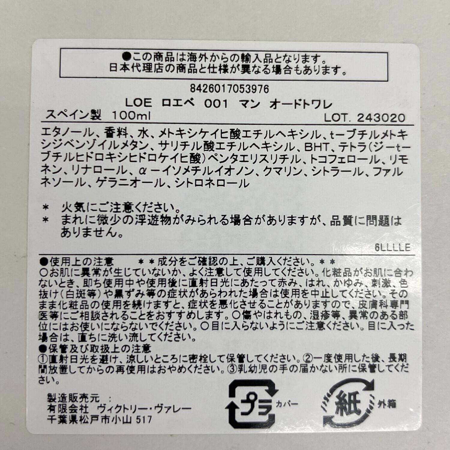 LOEWE (ロエベ) オードトワレ 100ml 残量80%-99% 001 マン