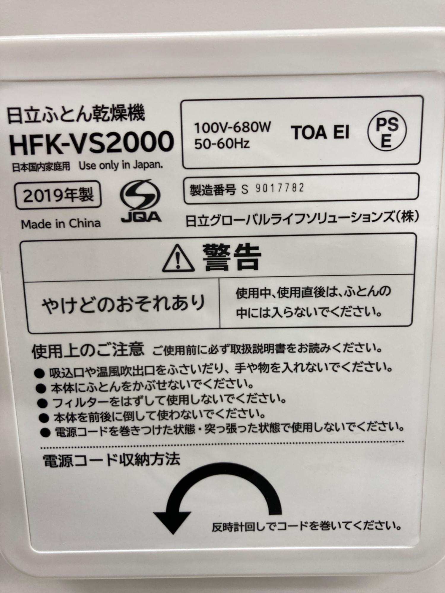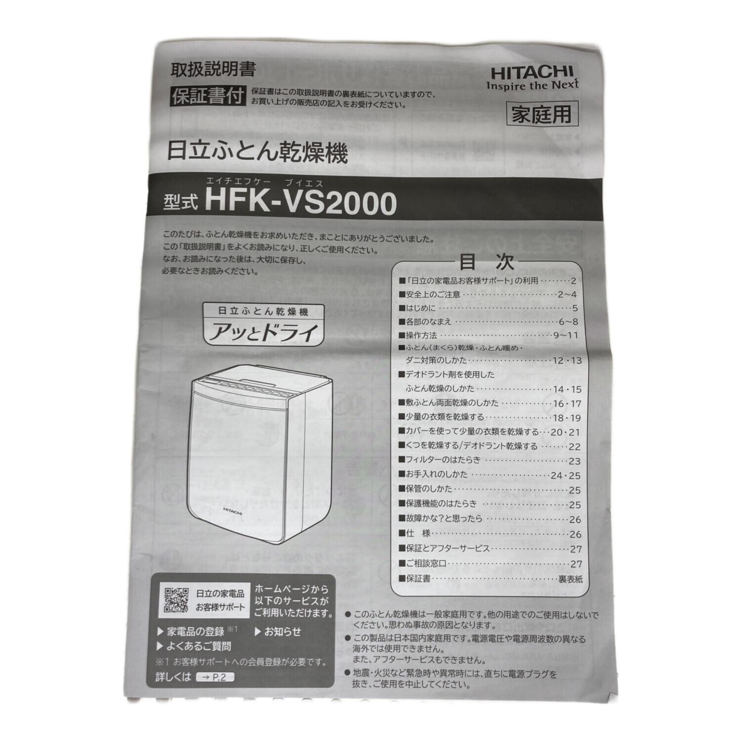 HITACHI (ヒタチ) 布団乾燥機 2019年製 HFK-VS2000 50Hz/60Hz