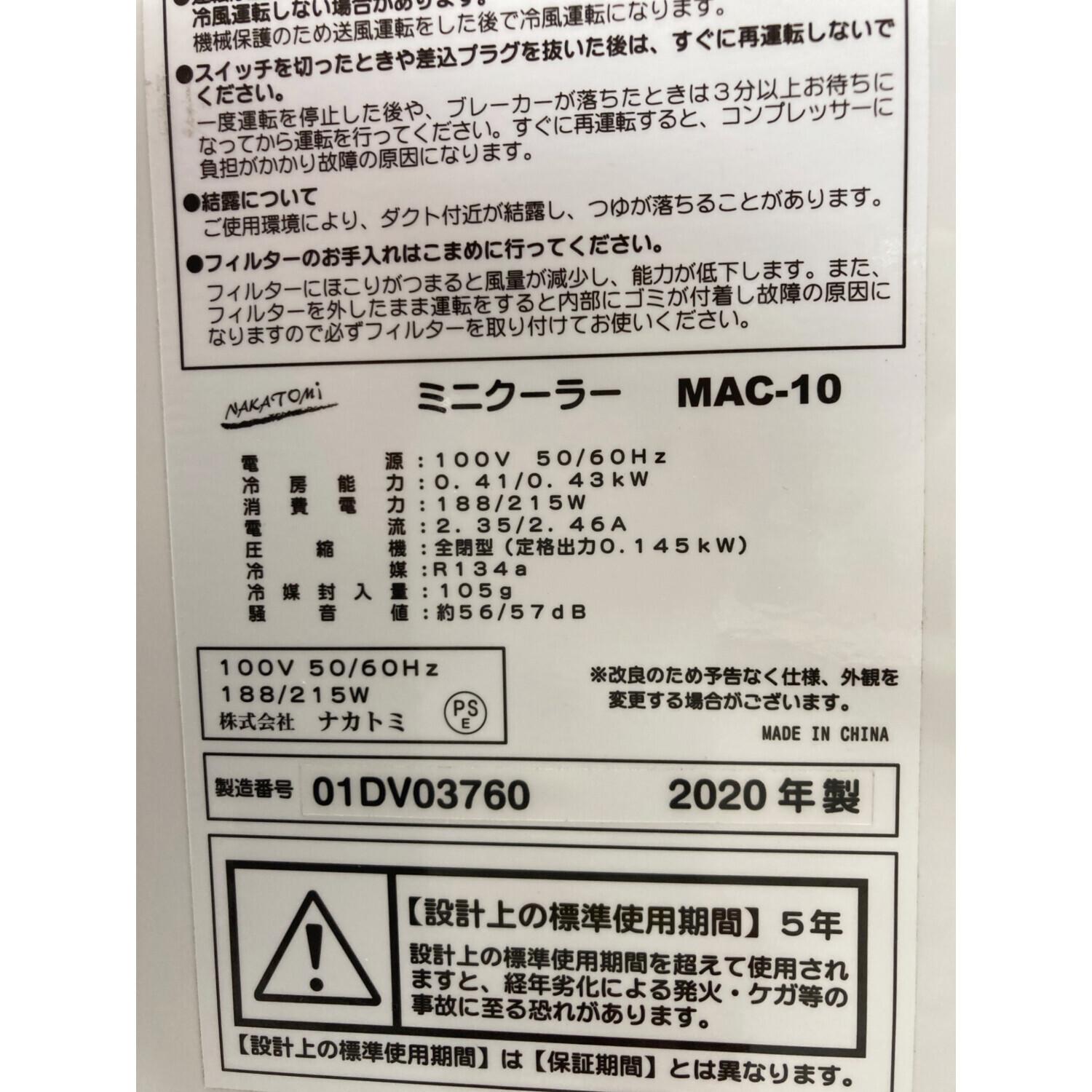 ナカトミ (ー) スポットクーラー MAC-10 2020年製 クリーニング済