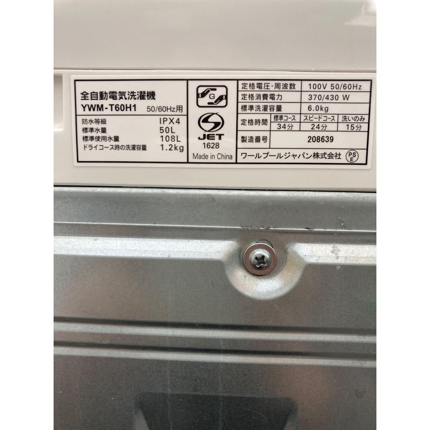 YAMADA (ヤマダ) 全自動洗濯機 6.0kg YWM-T60H1 2022年製 程度C(内部にヨゴレ有り) クリーニング済 50Hz/60Hz
