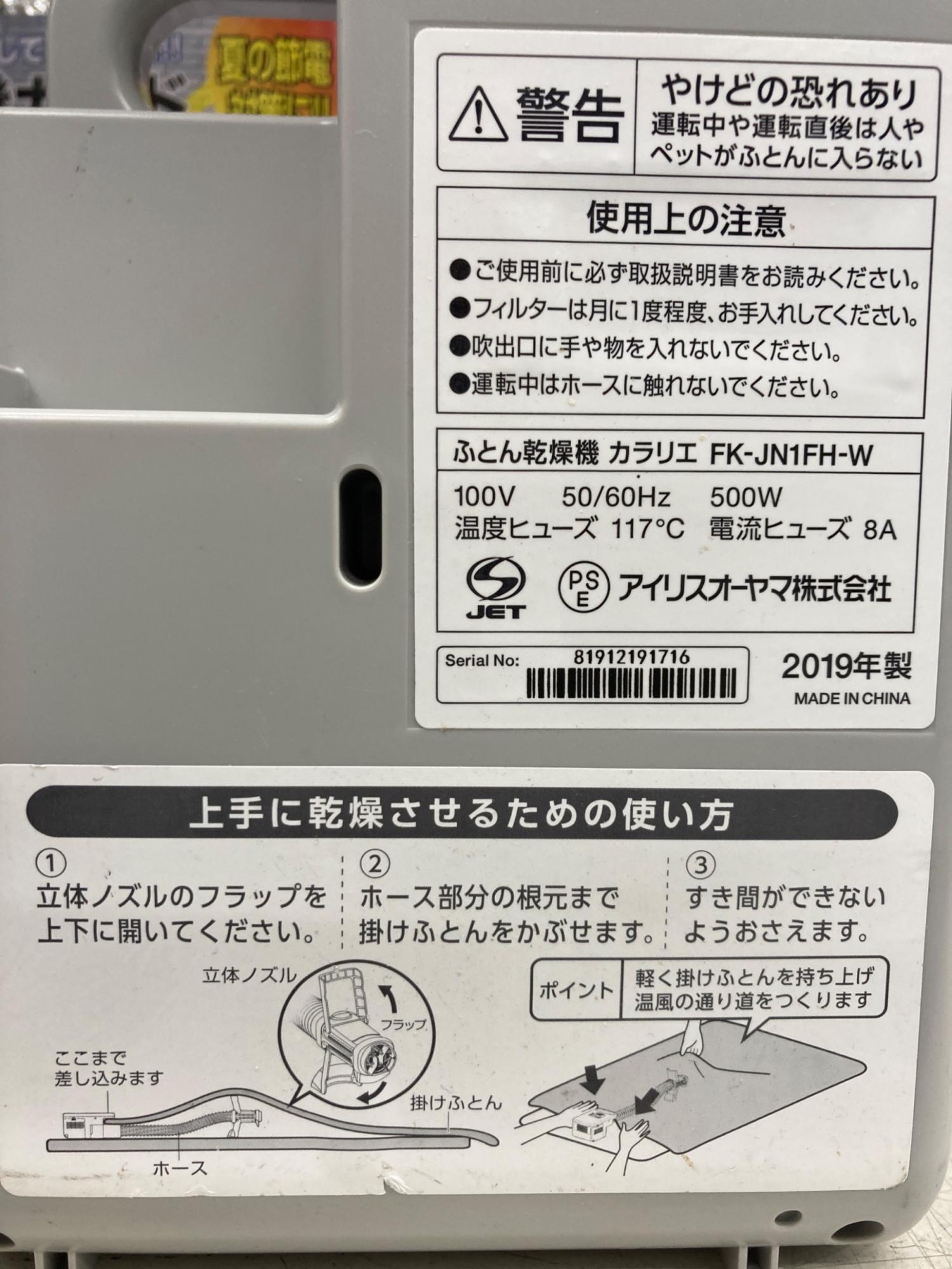 IRIS OHYAMA (アイリスオーヤマ) 布団乾燥機 2019年製 FK-JN1FH 50Hz/60Hz