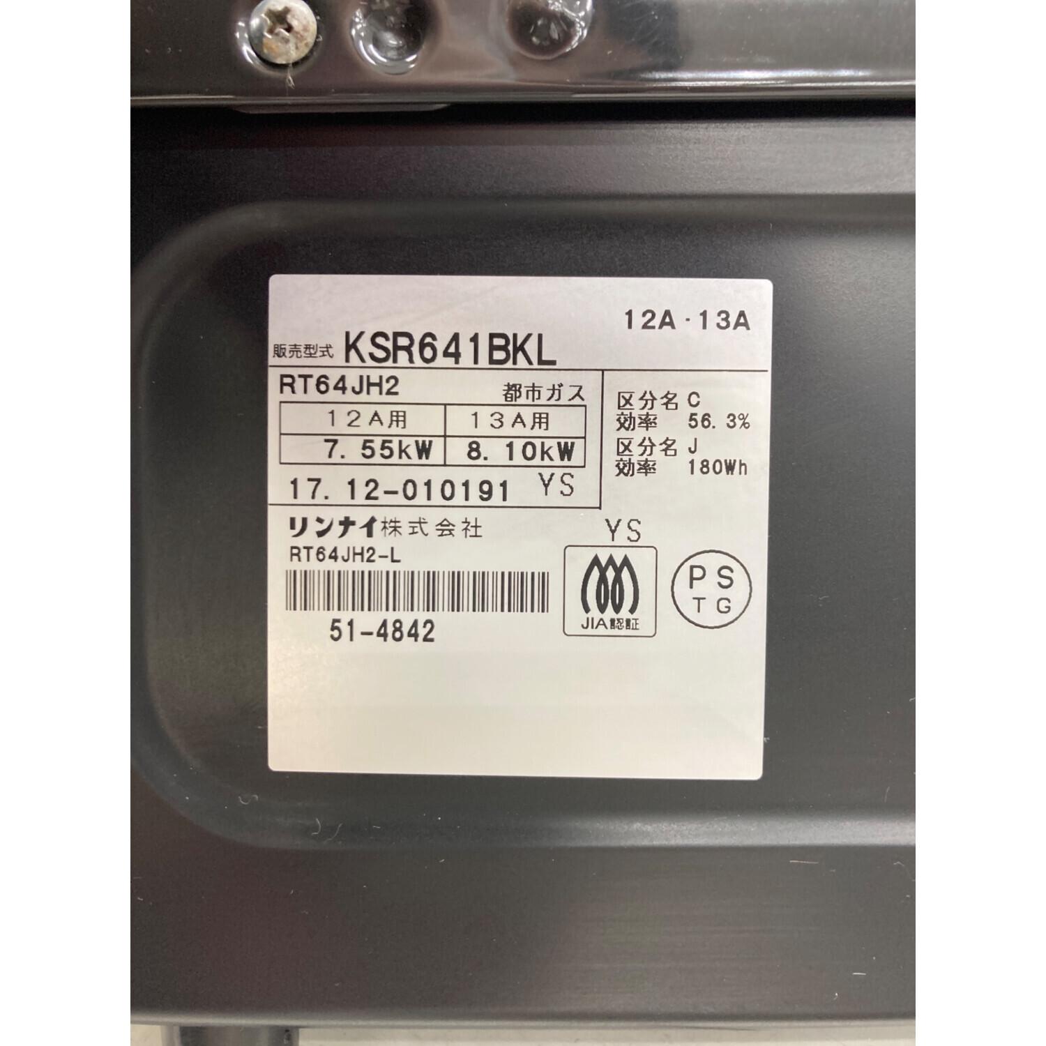 Rinnai (リンナイ) 都市ガステーブル PSTGマーク有 ノーマル KSR641BKL 2017年製