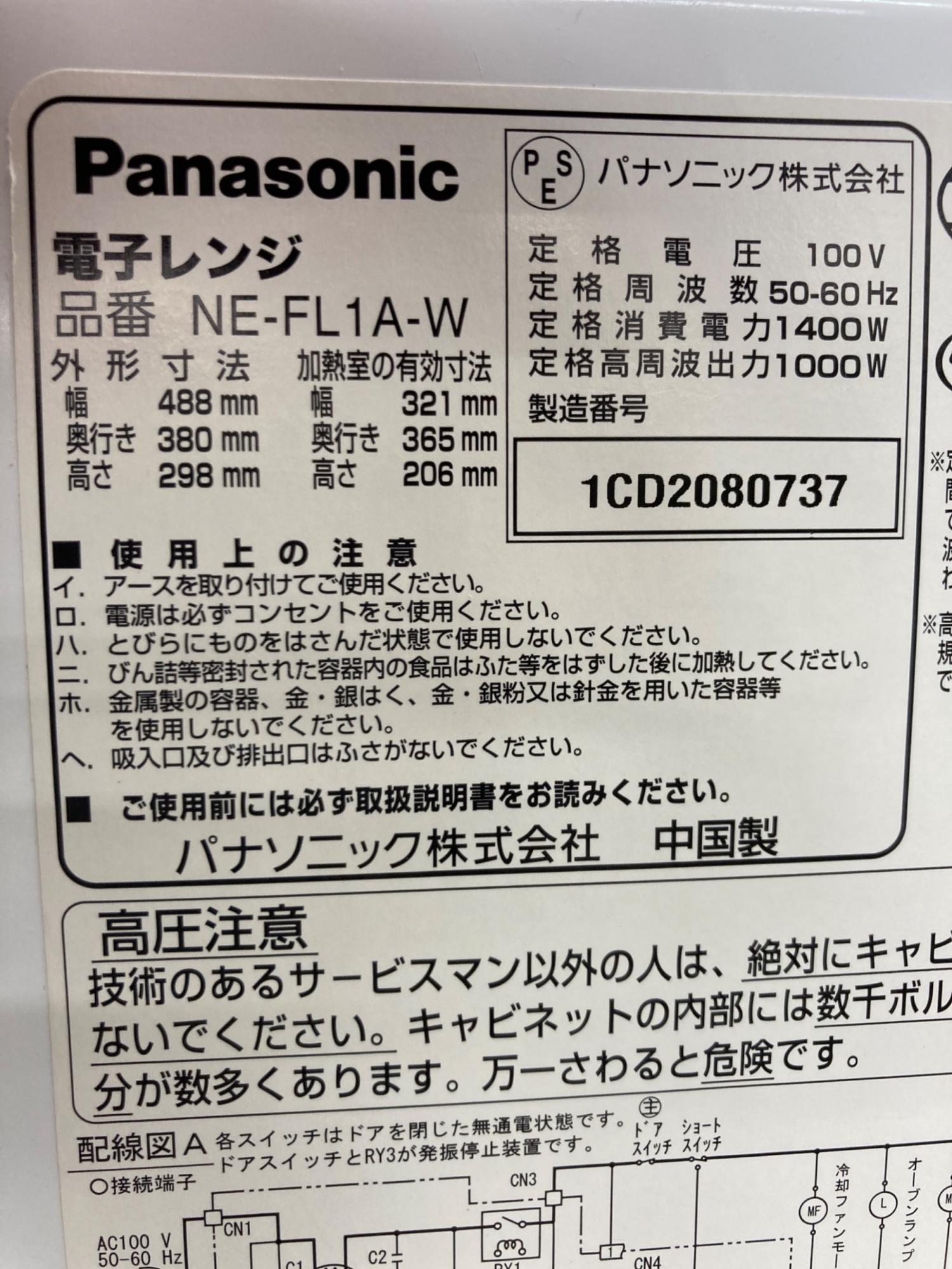 Panasonic (パナソニック) 電子レンジ NE-FL1A-W 2022年製 1000W 庫内フラット 50Hz/60Hz