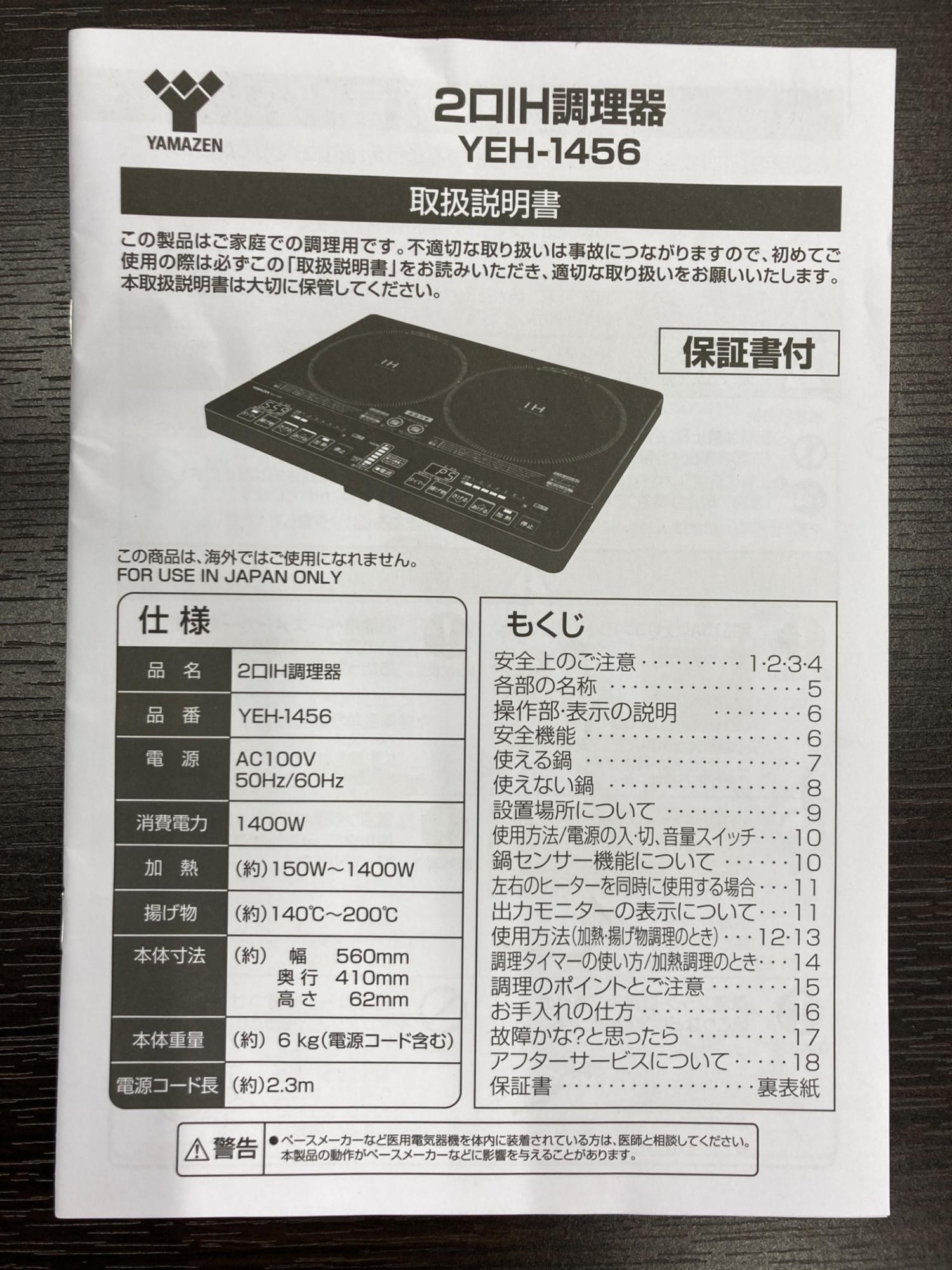 YAMAZEN (ヤマゼン) IHクッキングヒーター YEH-1456 2019年製