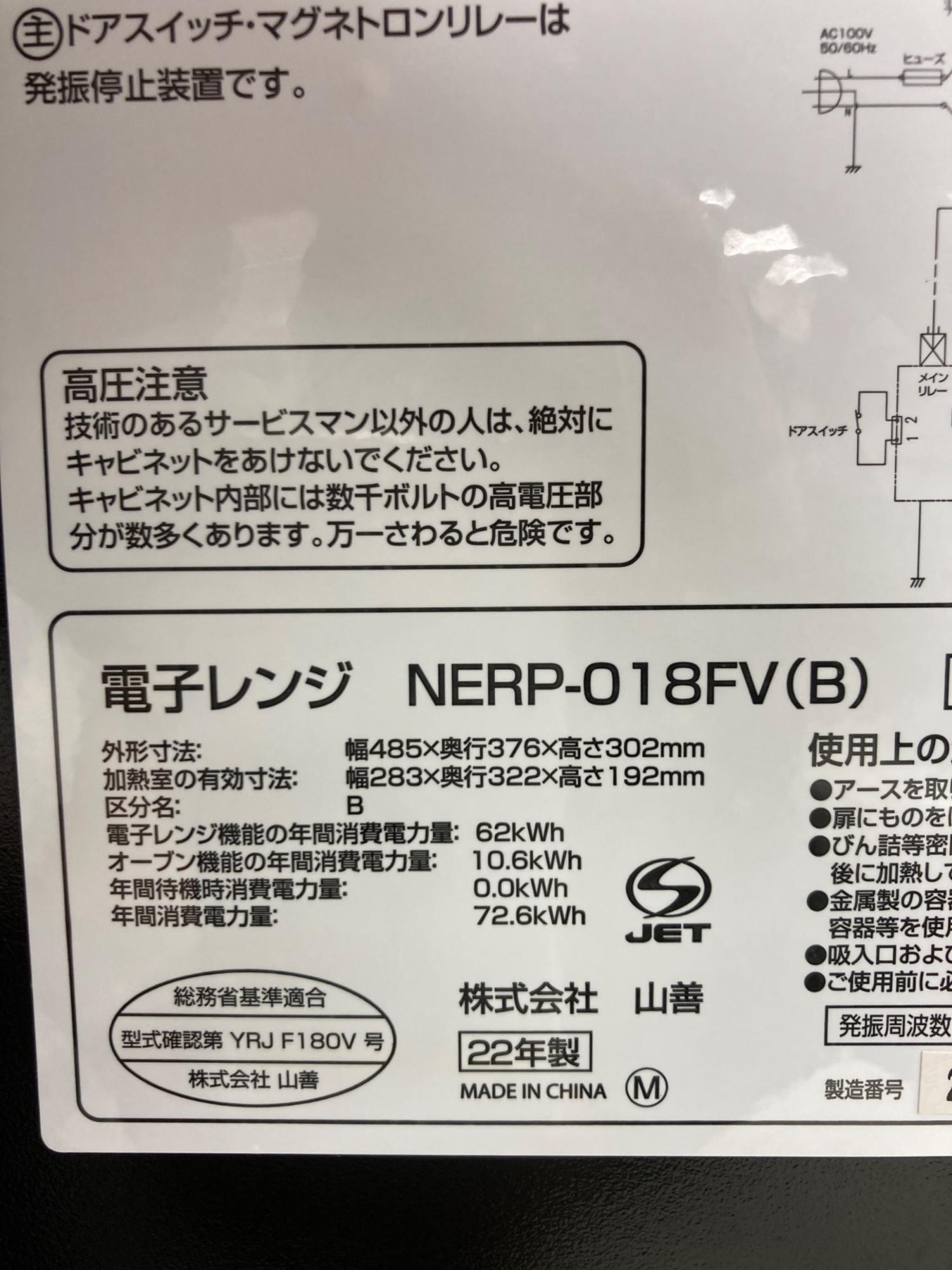 YAMAZEN (ヤマゼン) オーブンレンジ NERP-018FV 2022年製 50Hz/60Hz
