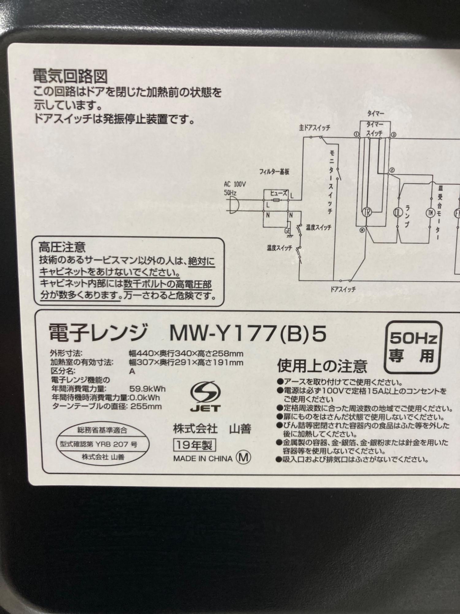 YAMAZEN (ヤマゼン) 電子レンジ MW-Y177 2019年製 700W ターンテーブル 50Hz専用