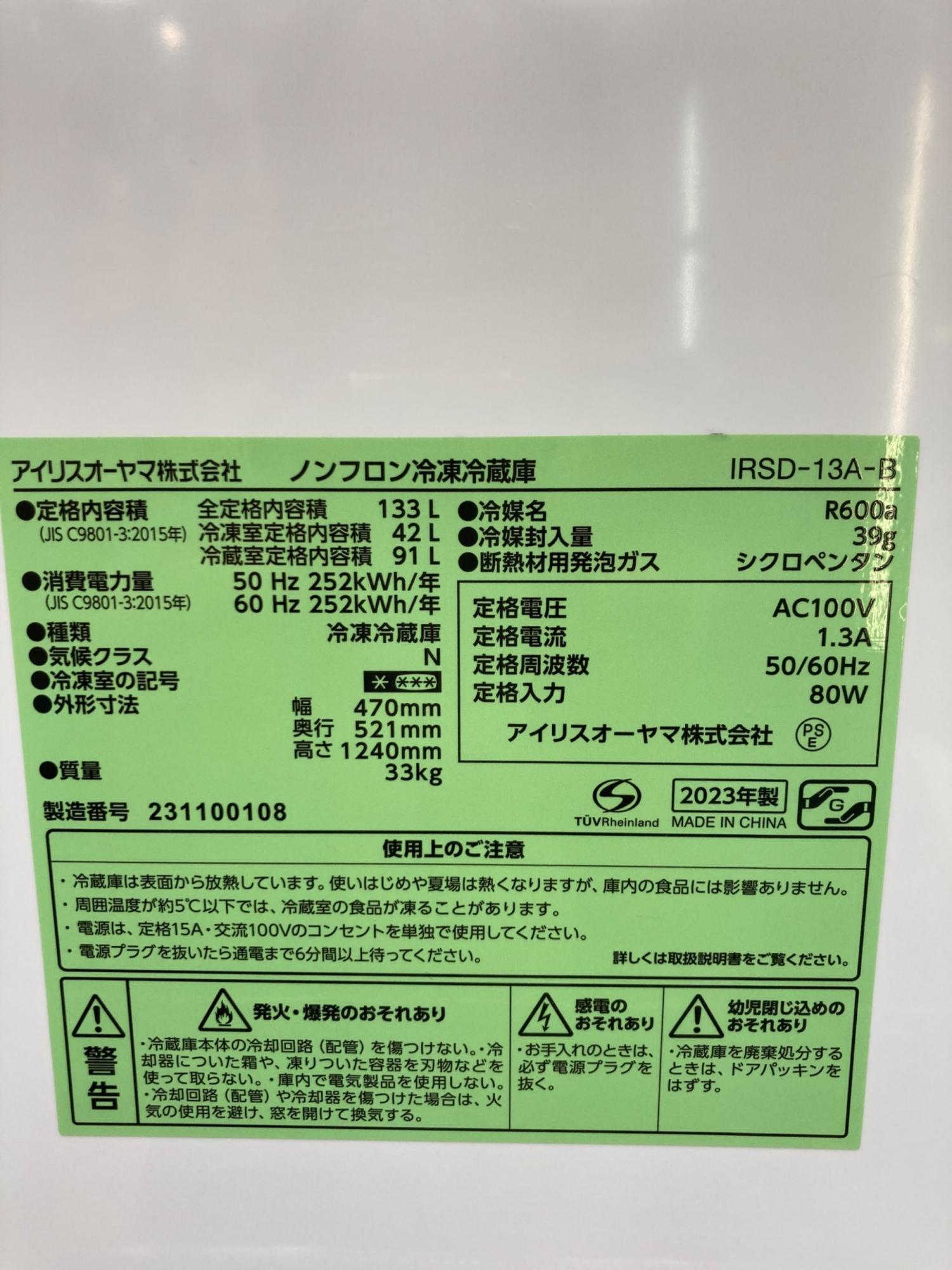 IRIS OHYAMA (アイリスオーヤマ) 2ドア冷蔵庫 2023年製 133L