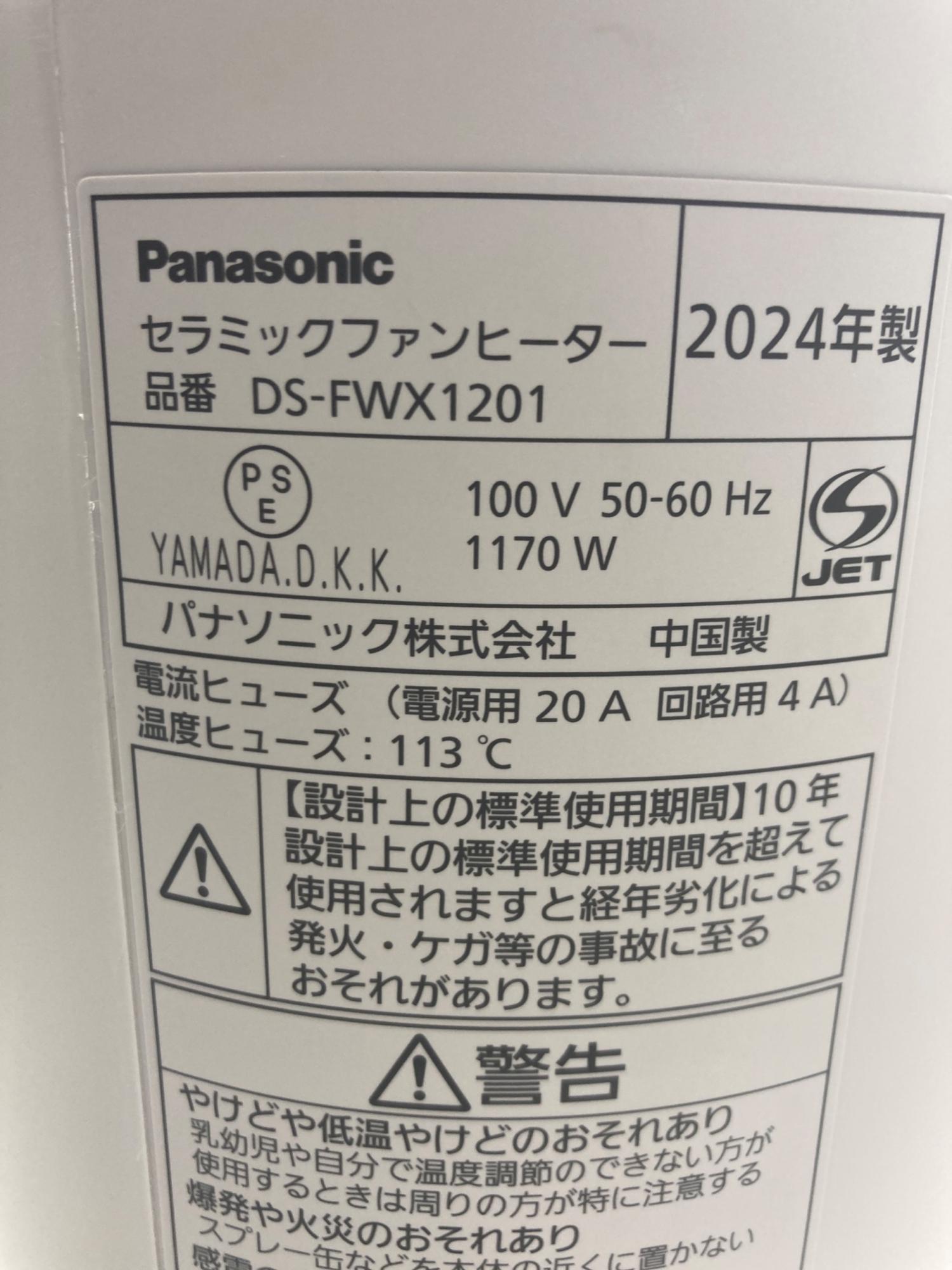 Panasonic (パナソニック) セラミックファンヒーター DS-FWX1201 2024年製