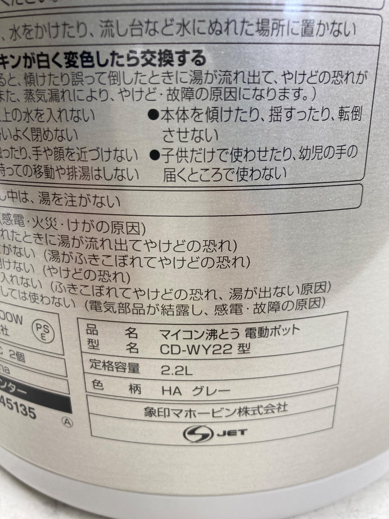 象印 (ゾウジルシ) 電気ポット CD-WY22 2021年製