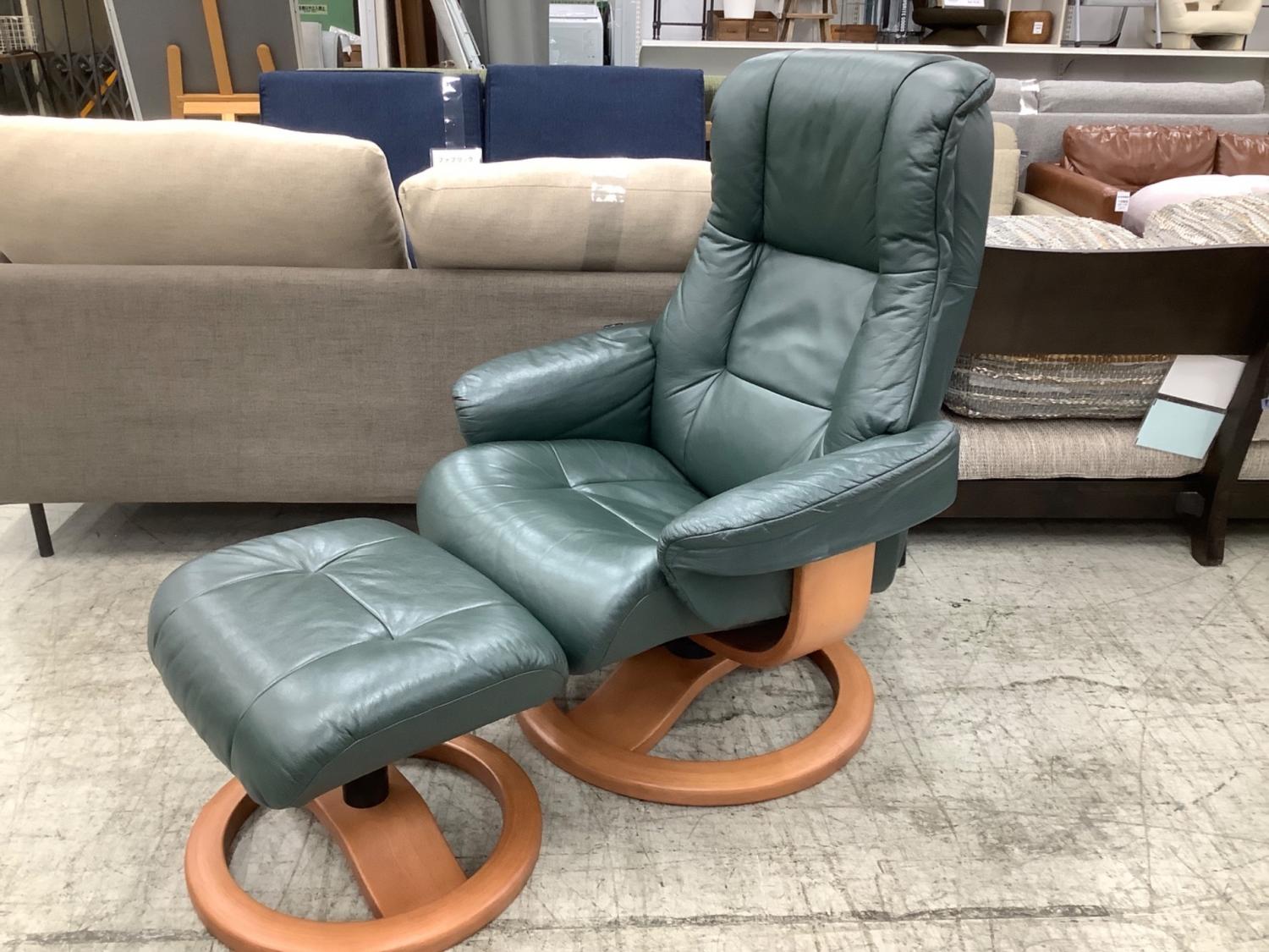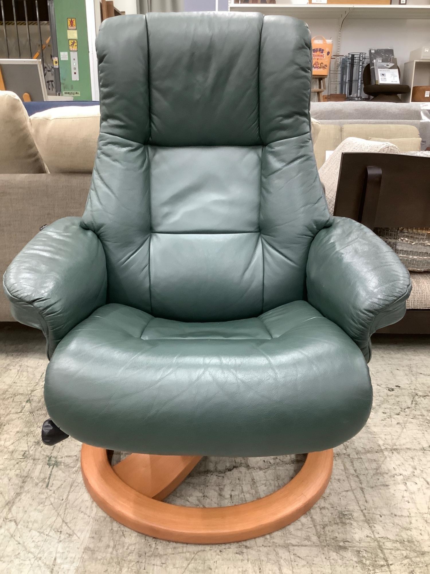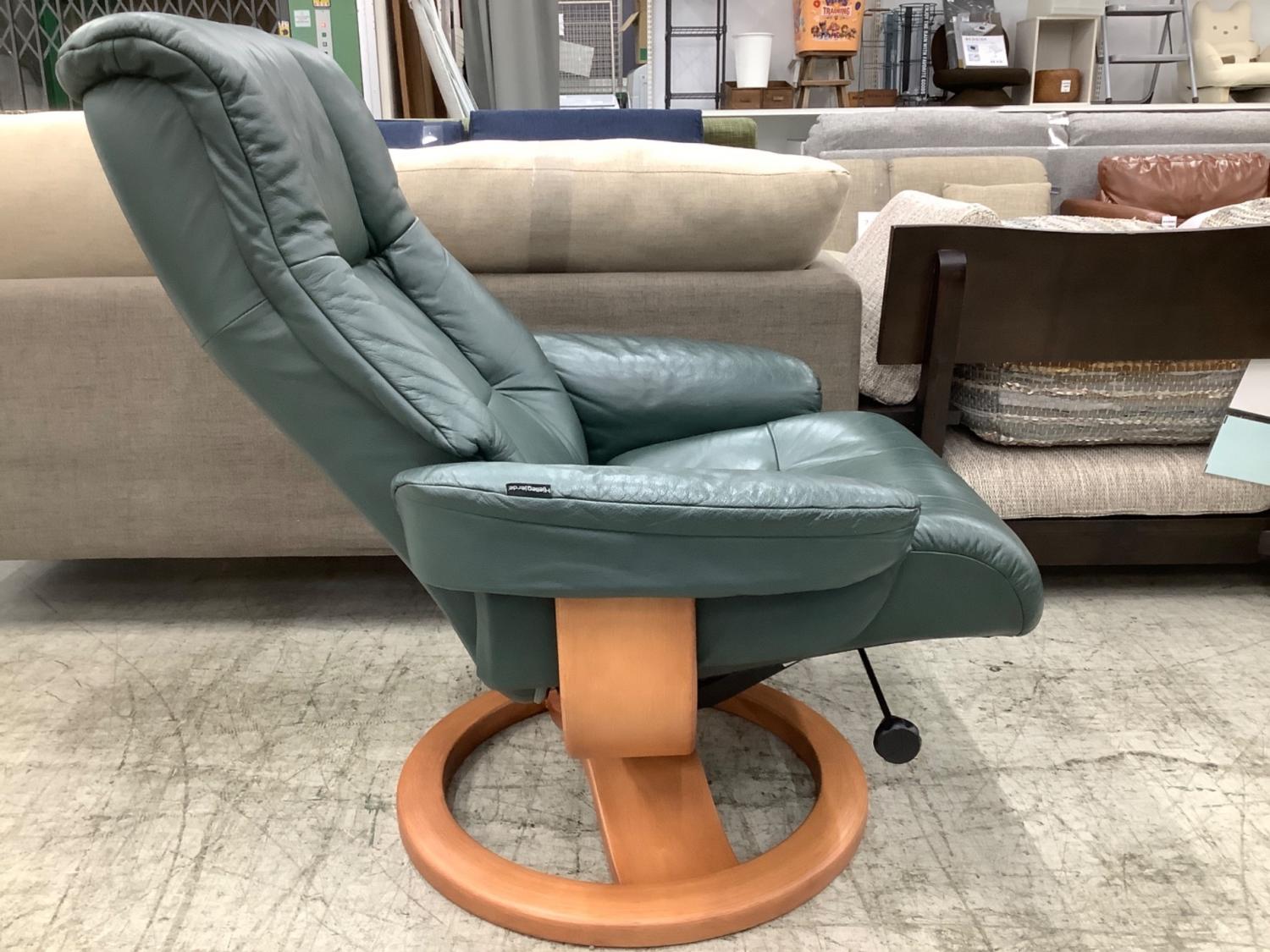 HJELLEGJERDE (イエリアーダ) パーソナルチェア グリーン×ナチュラル オットマン付