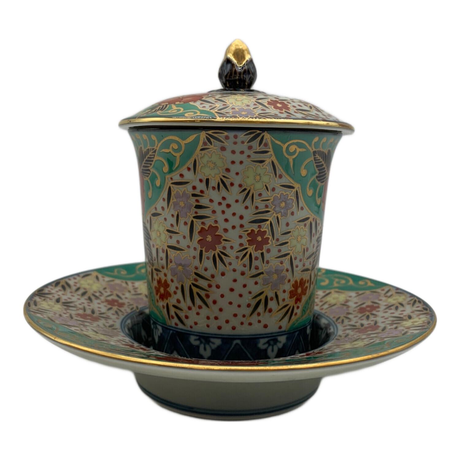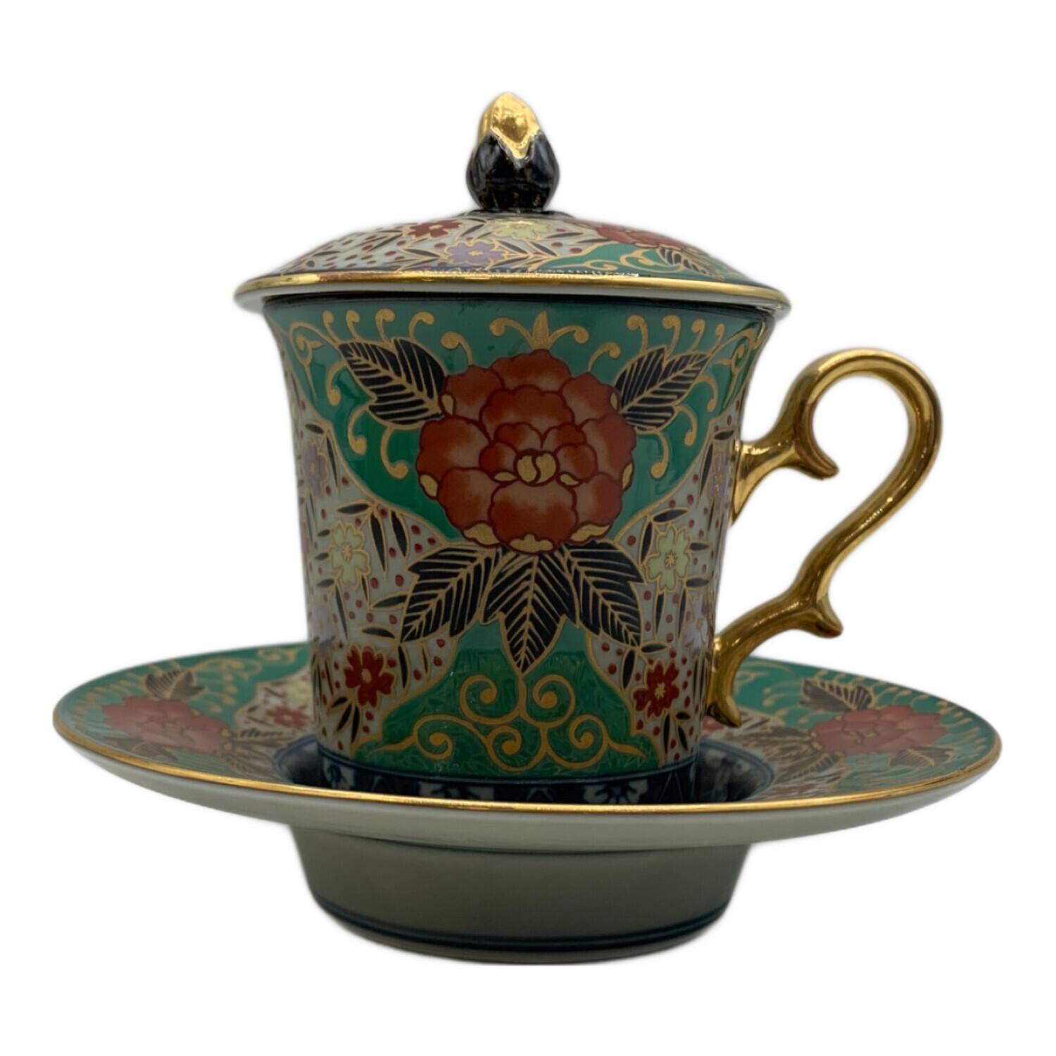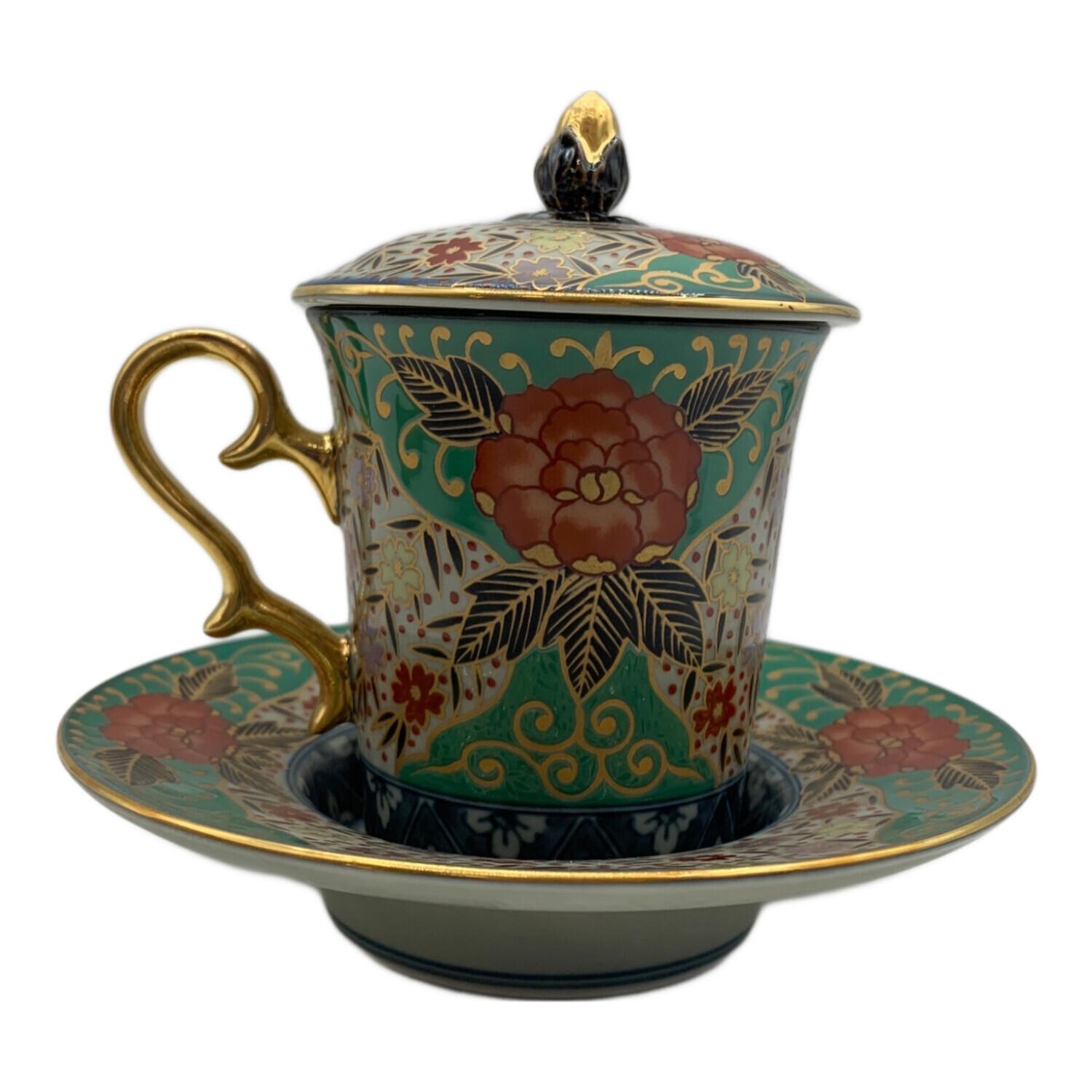 古伊万里 (コイマリ) 蓋付カップ&ソーサー 林九郎作