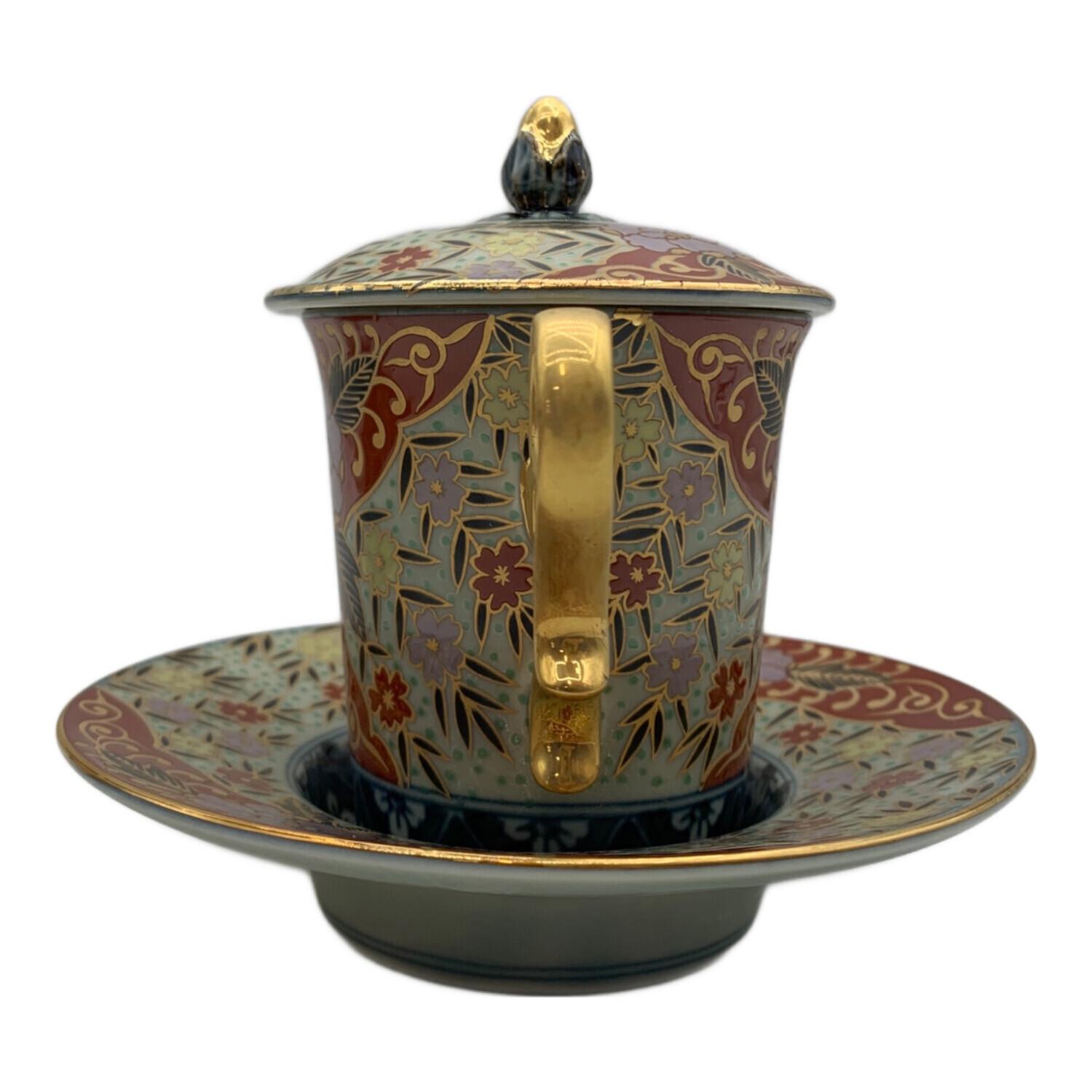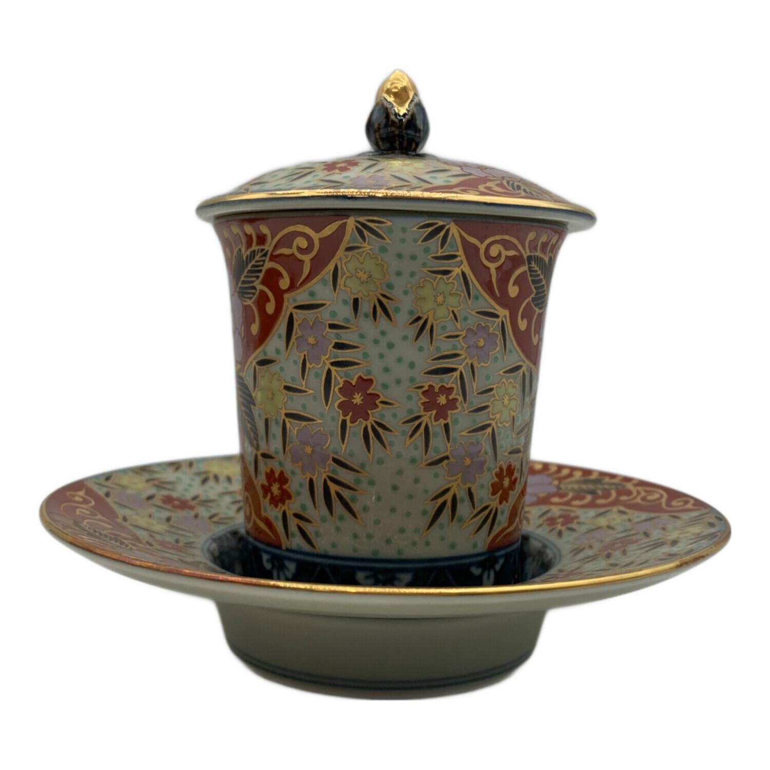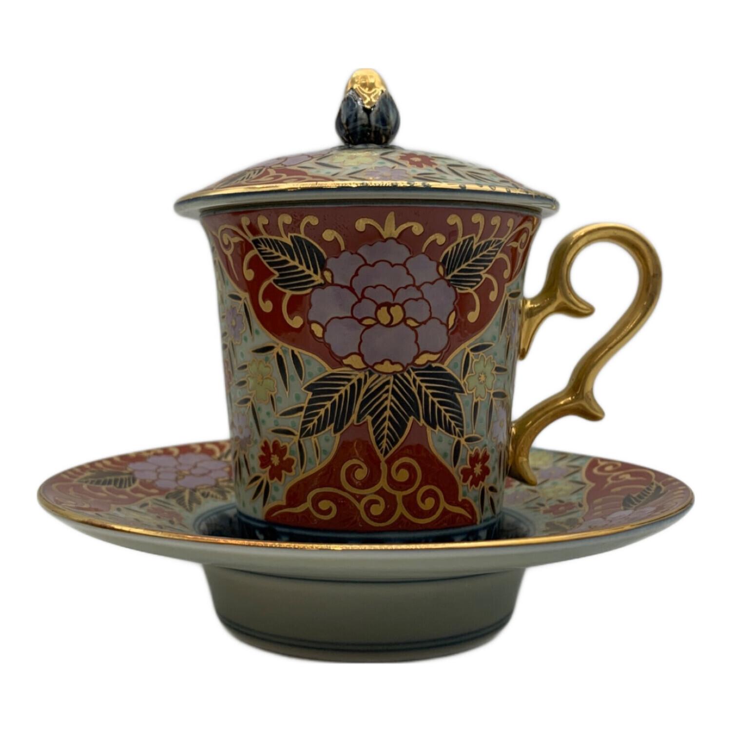 古伊万里 (コイマリ) 蓋付カップ&ソーサー 林九郎作