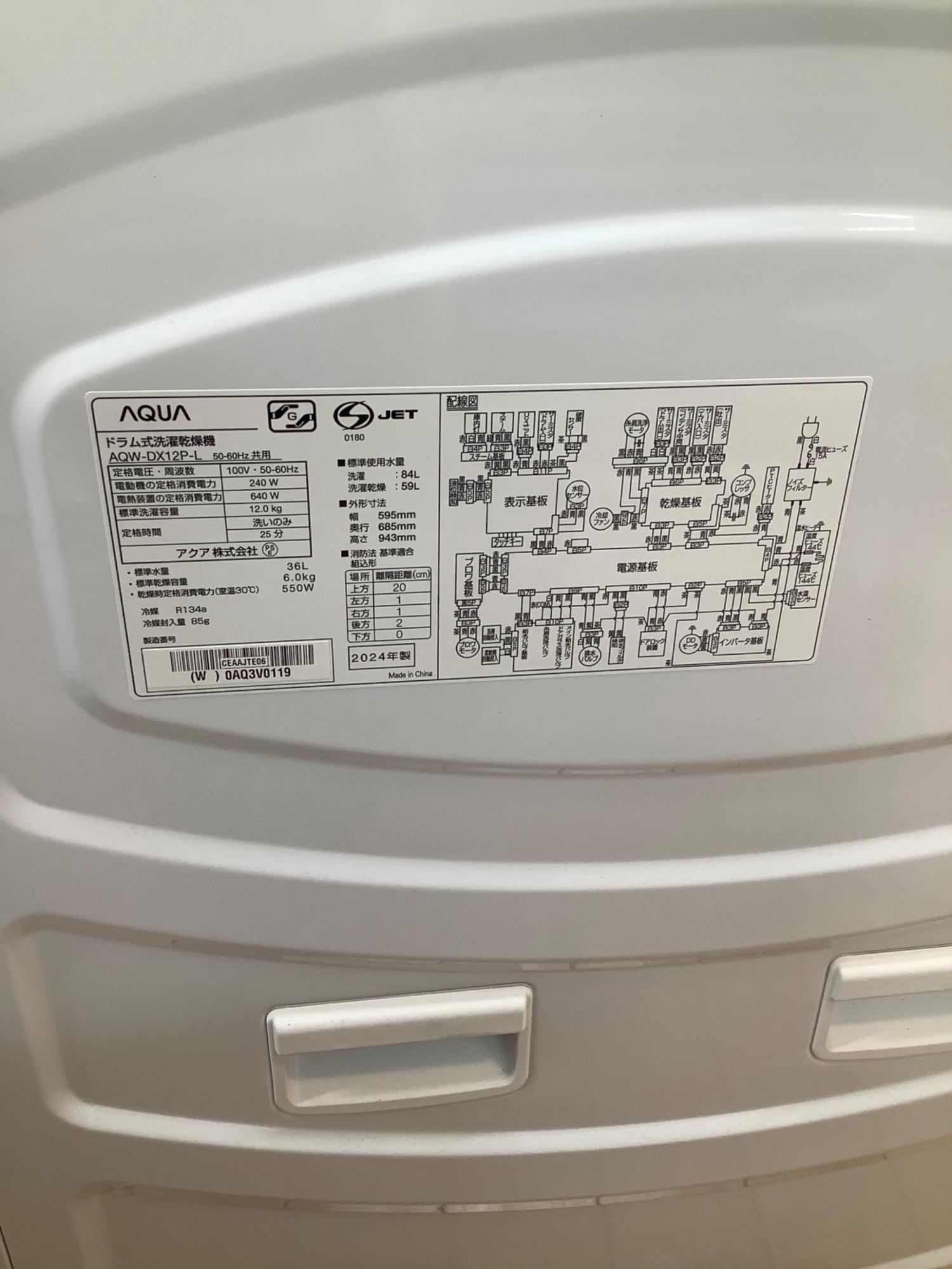 AQUA (アクア) ドラム式洗濯乾燥機 AQW-DX12P 2024年製