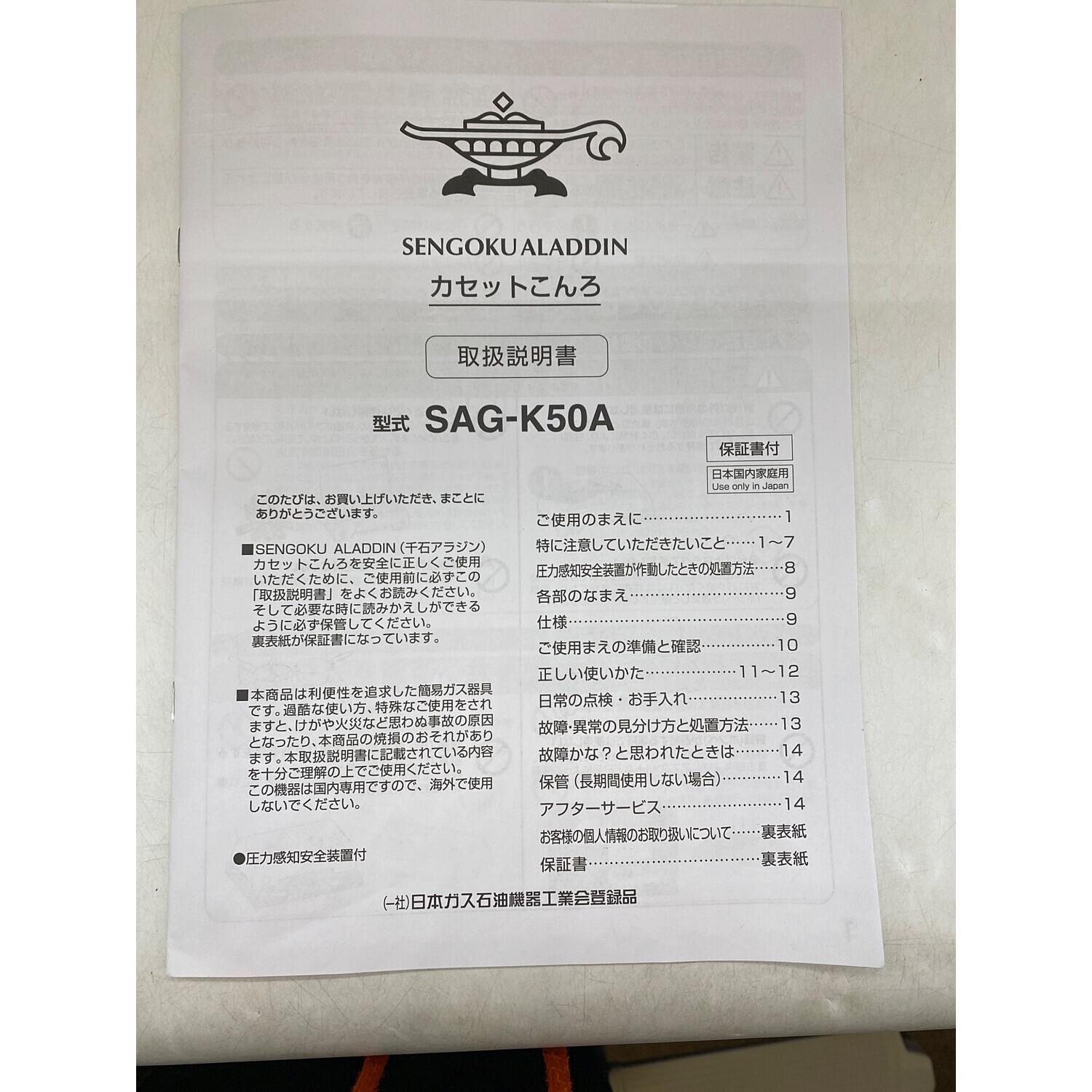 SENGOKU Aladdin (センゴク アラジン) カセットコンロ PSLPGマーク有 SAG-K50A 2022年製 使用燃料【CB缶】