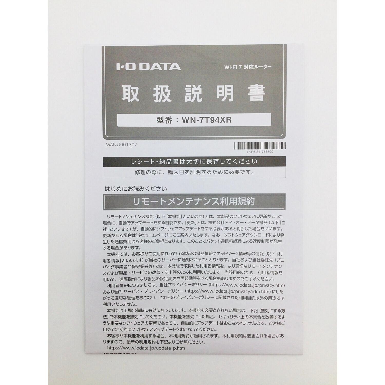IODATA (アイオーデータ) Wi-Fi(無線LAN)ルーター WN-7T94XR