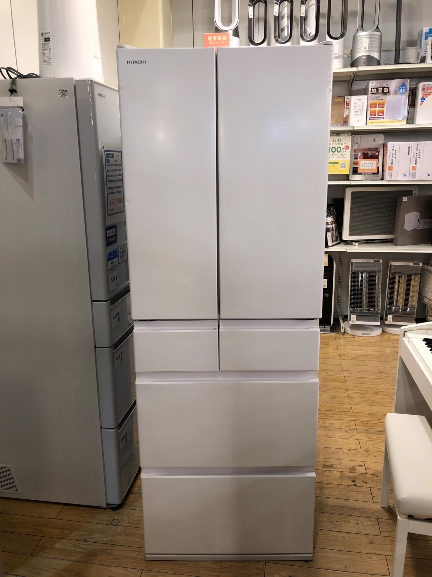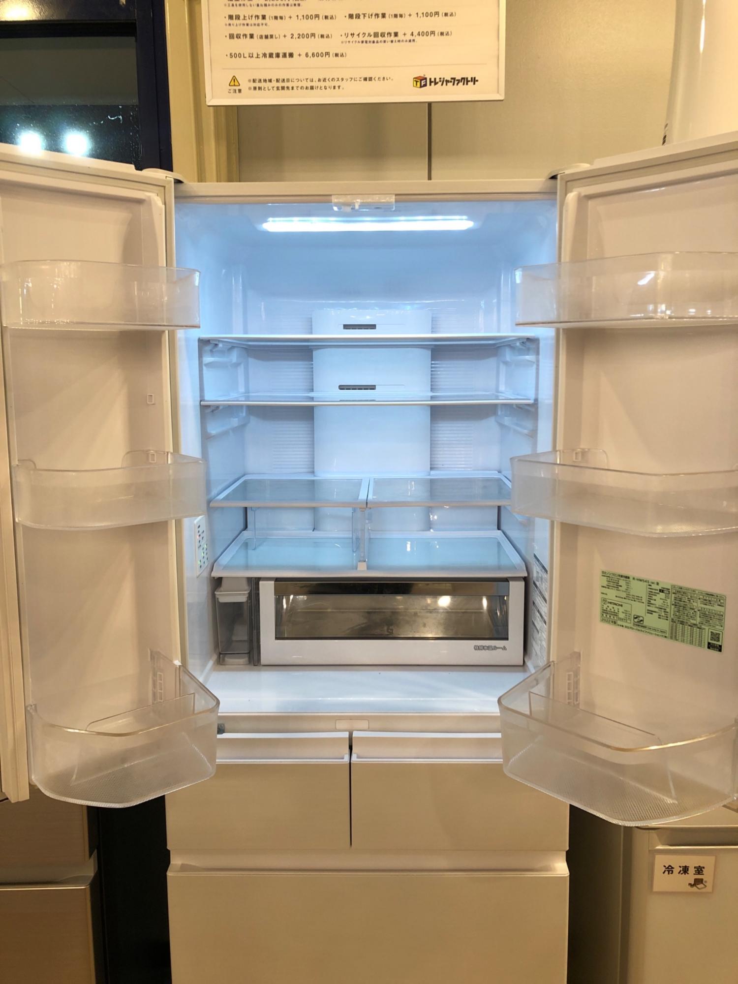 HITACHI (ヒタチ) 6ドア冷蔵庫 ※側面キズ・正面ヘコミ・ドリンクポケットヒビ割れ有 ファン式 R-HW54S(W) 2022年製 540L クリーニング済