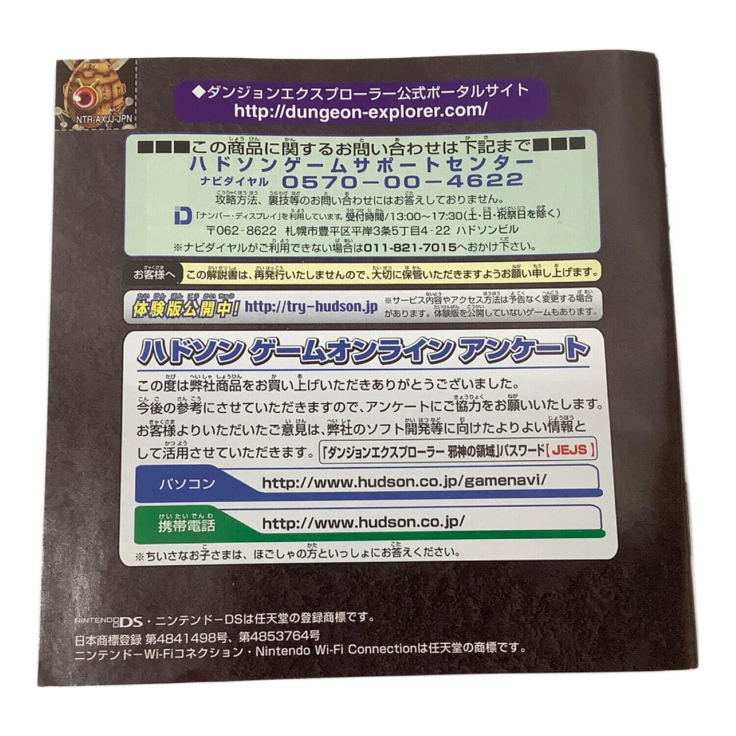 DS用ソフト ダンジョンエクスプローラー 邪神の領域/DS/NTRPAXJJ/A 全年齢対象 CERO A (全年齢対象)