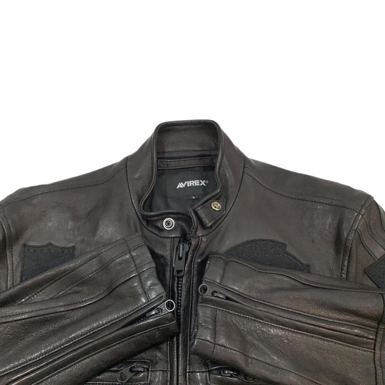 AVIREX (アヴィレックス) PATCHED RIDERS JACKET メンズ SIZE L ブラック @ ラムレザー 6121043 国内代理店表記 有