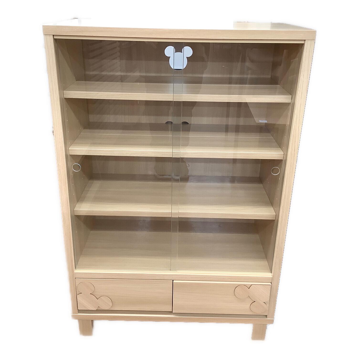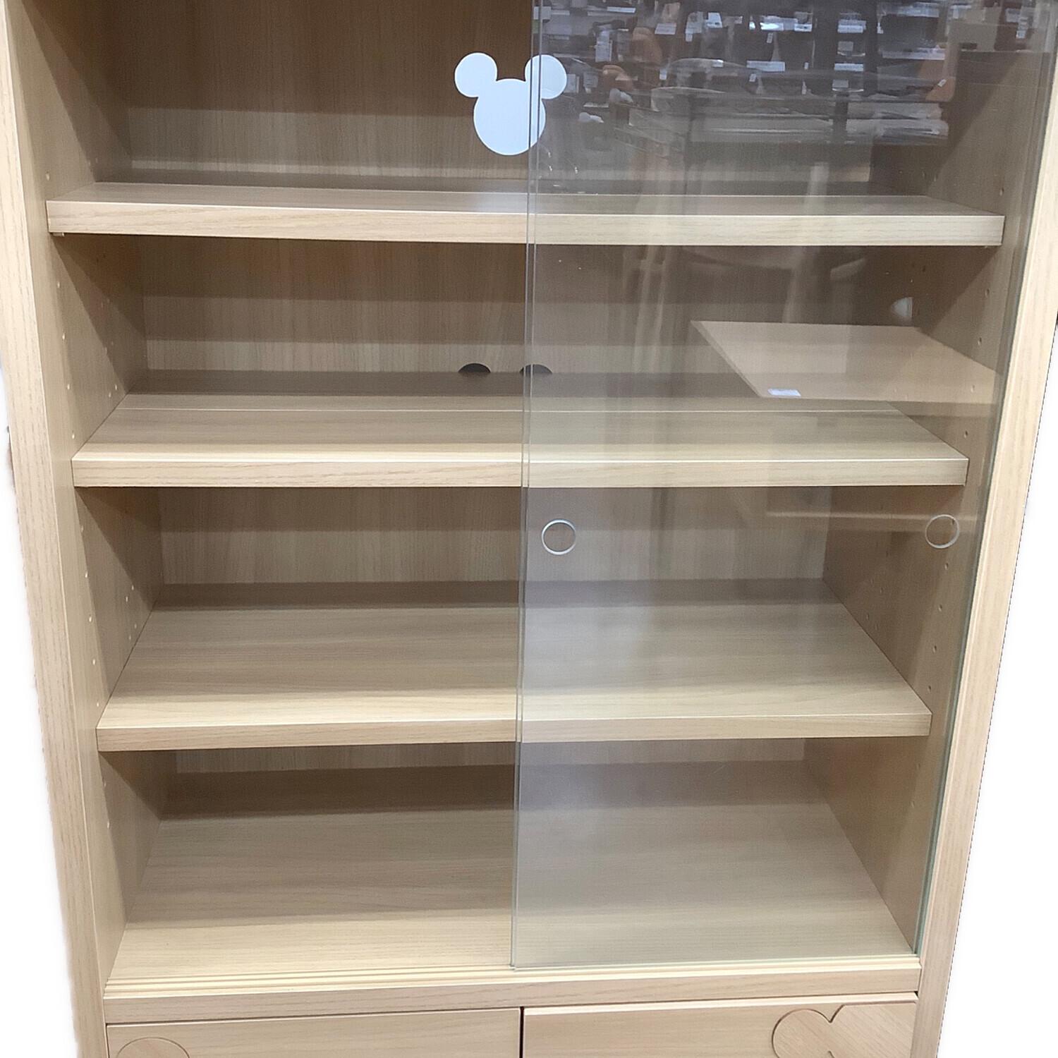 キャビネット ナチュラル Disney 175 2枚ガラス扉 引き出し付