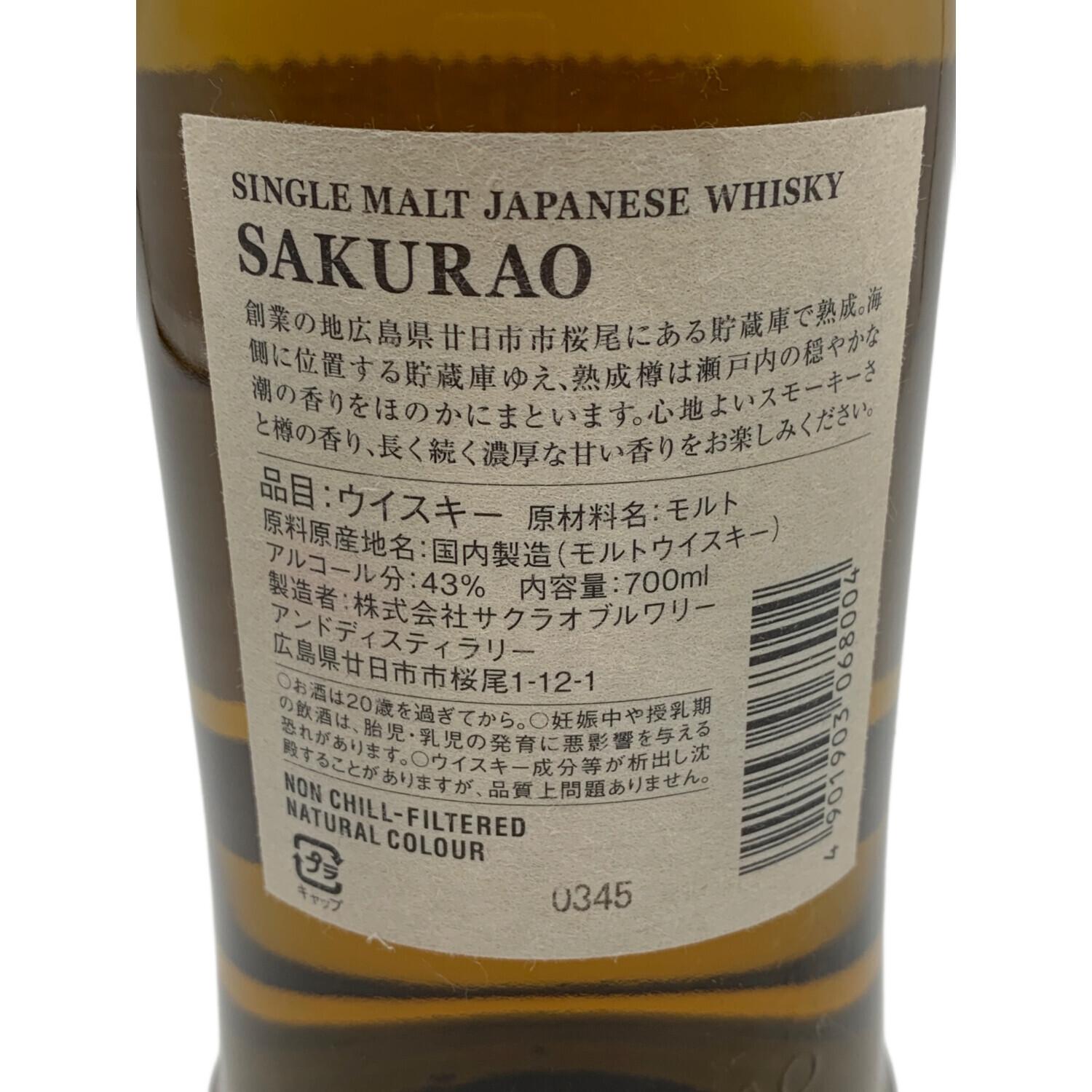 株式会社サクラオブルワリー ウィスキー 700ml 桜尾 未開封