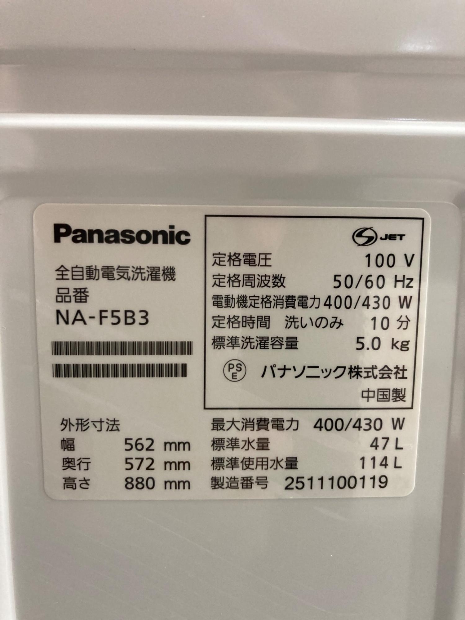 Panasonic (パナソニック) 全自動洗濯機 32 5.0kg NA-F5B3 2025年製 クリーニング済 50Hz/60Hz