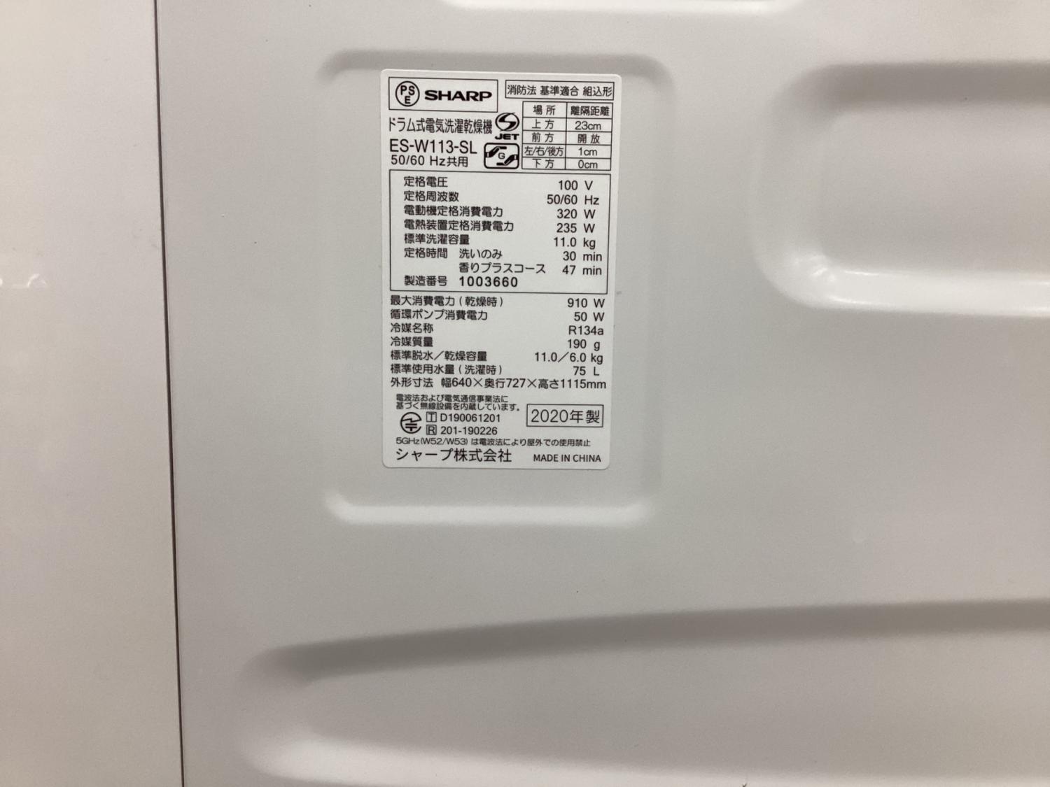 SHARP (シャープ) ドラム式洗濯乾燥機 ES-W113-SL 2020年製 AI自動運転