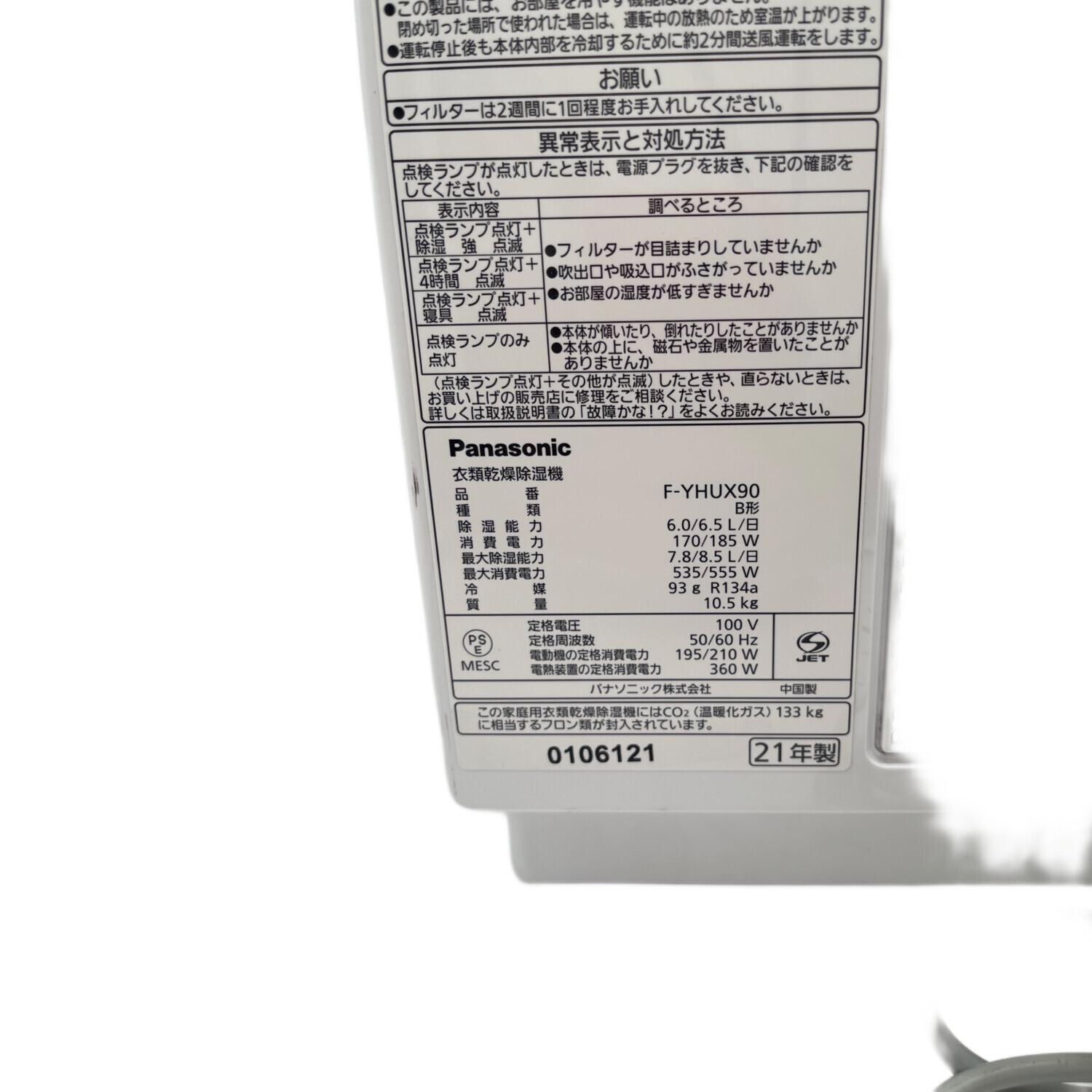 Panasonic (パナソニック) 衣類乾燥除湿機 F-YHUX90 2021年製