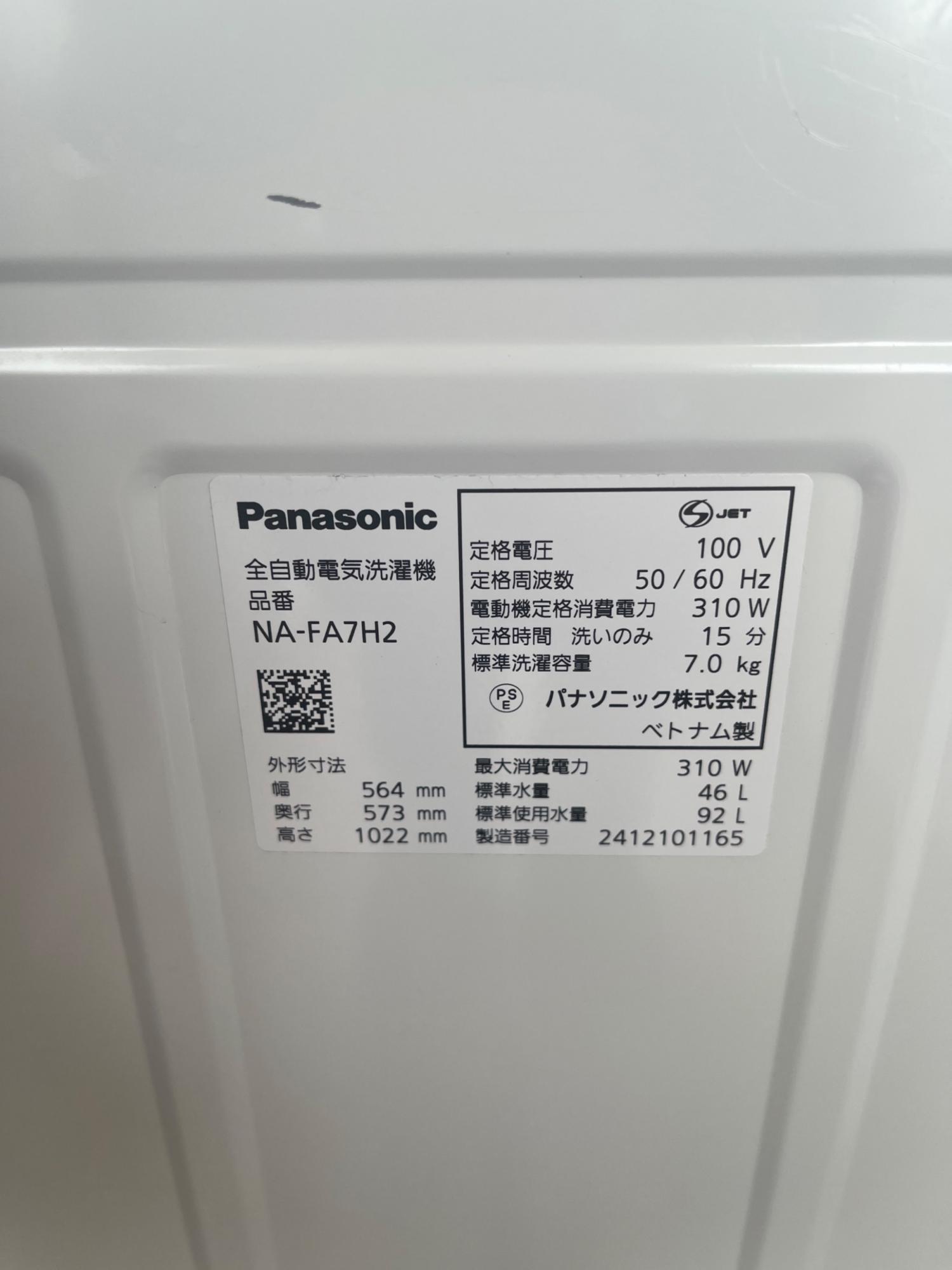 Panasonic (パナソニック) 全自動洗濯機 NA-FA7H2 2024年製