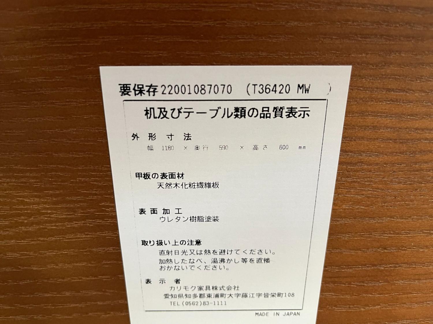 カリモク60+ (カリモクロクマルプラス) カフェテーブル T36420MW 幅:約118㎝ ウォールナットカラー カフェテーブル1200