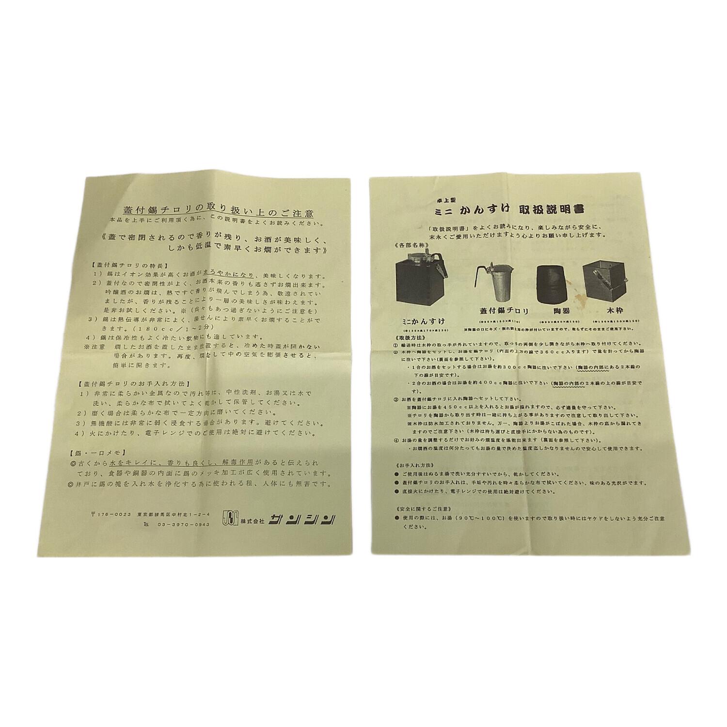 サンシン 卓上型・蓋付錫ちろり ミニかんすけ