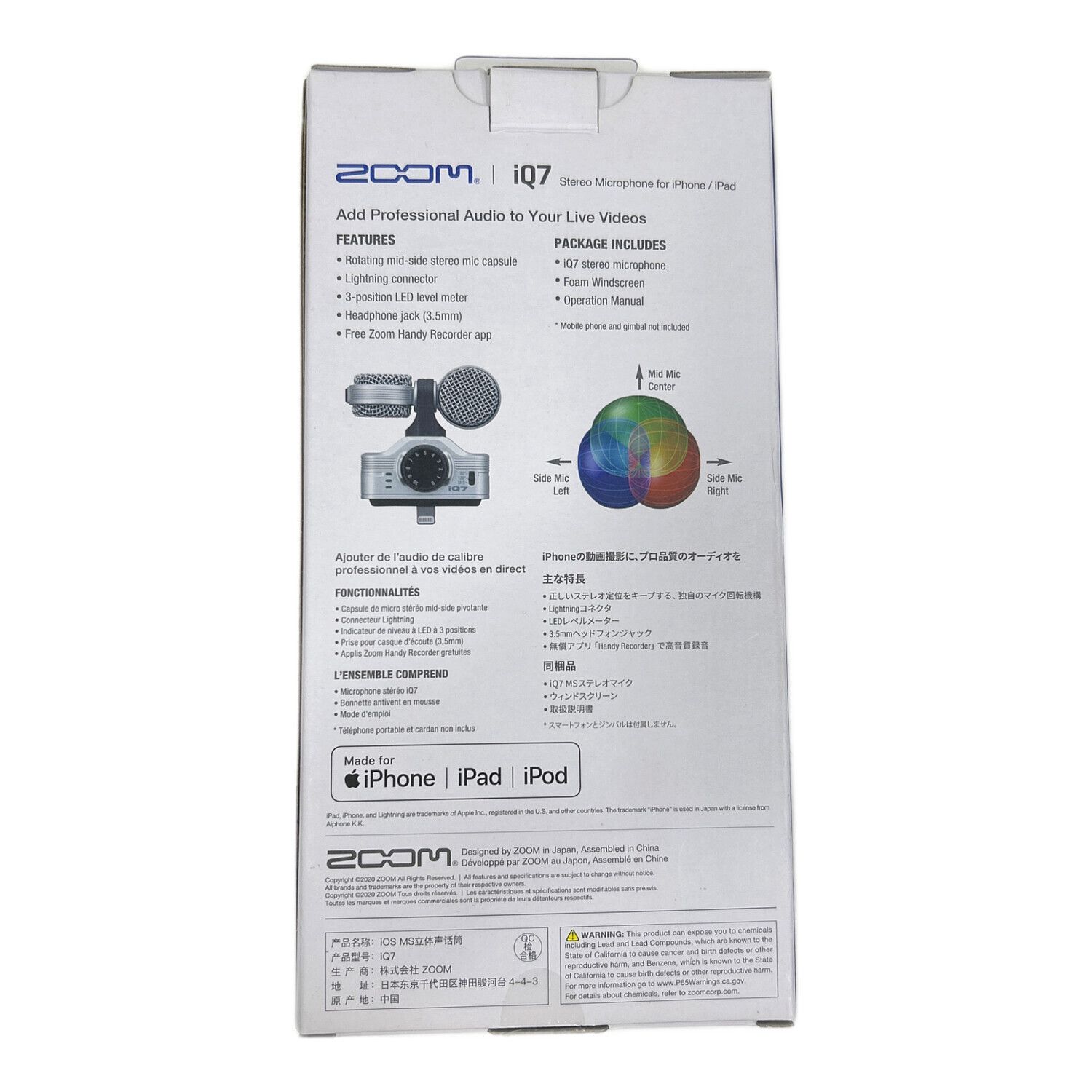 ZOOM (ズーム) ステレオコンデンサーマイク IQ7