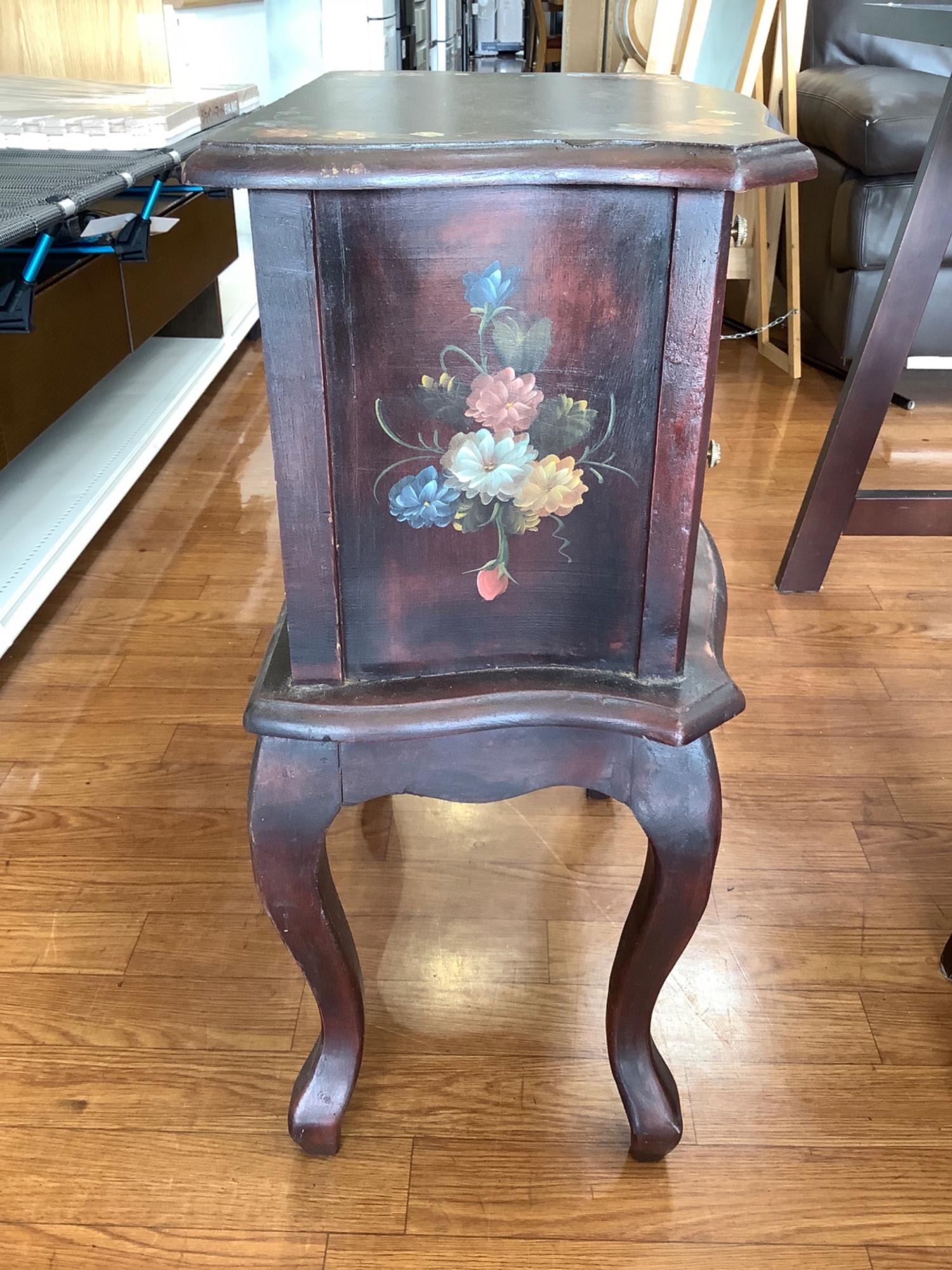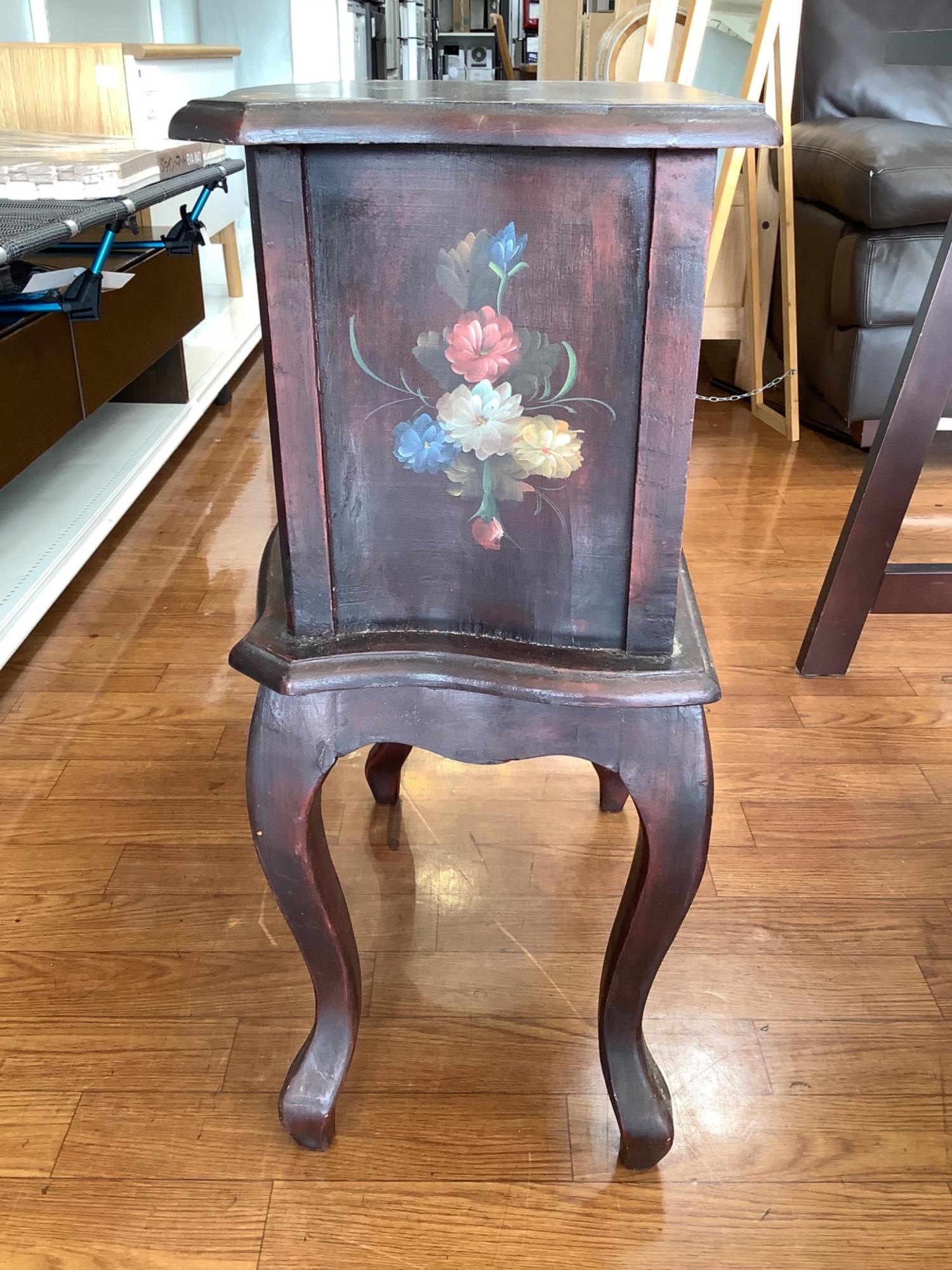 サイドチェスト 猫脚 花柄 ダークブラウン