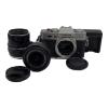 本体に薄汚れ・擦れ・キズ、レンズにフチの擦れ・胴の擦れなどの使用感あり。1枚目画像がすべての付属品となります。