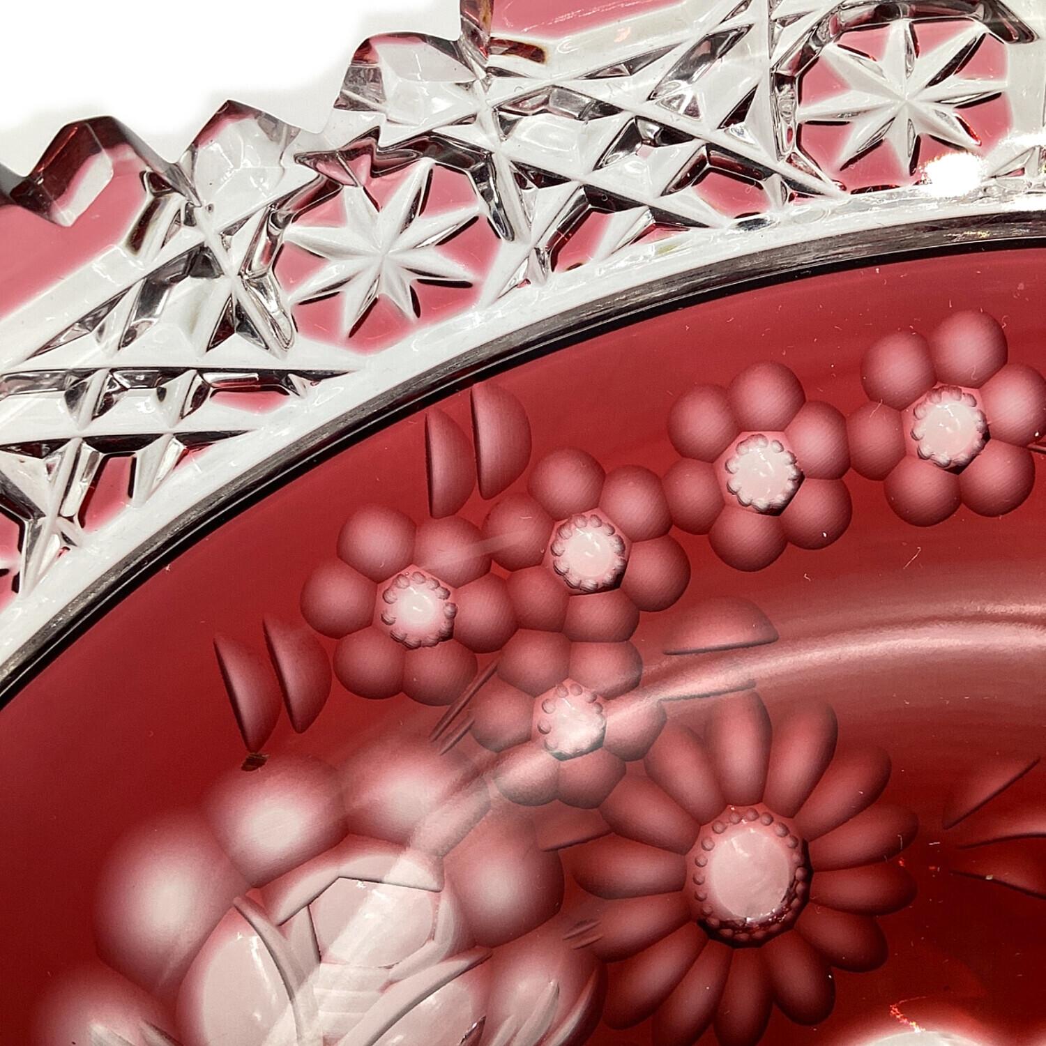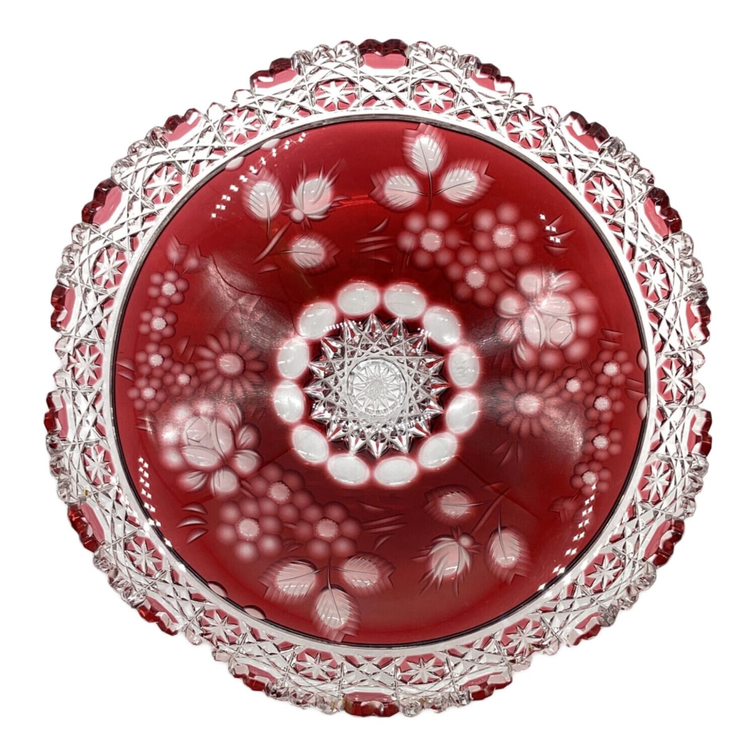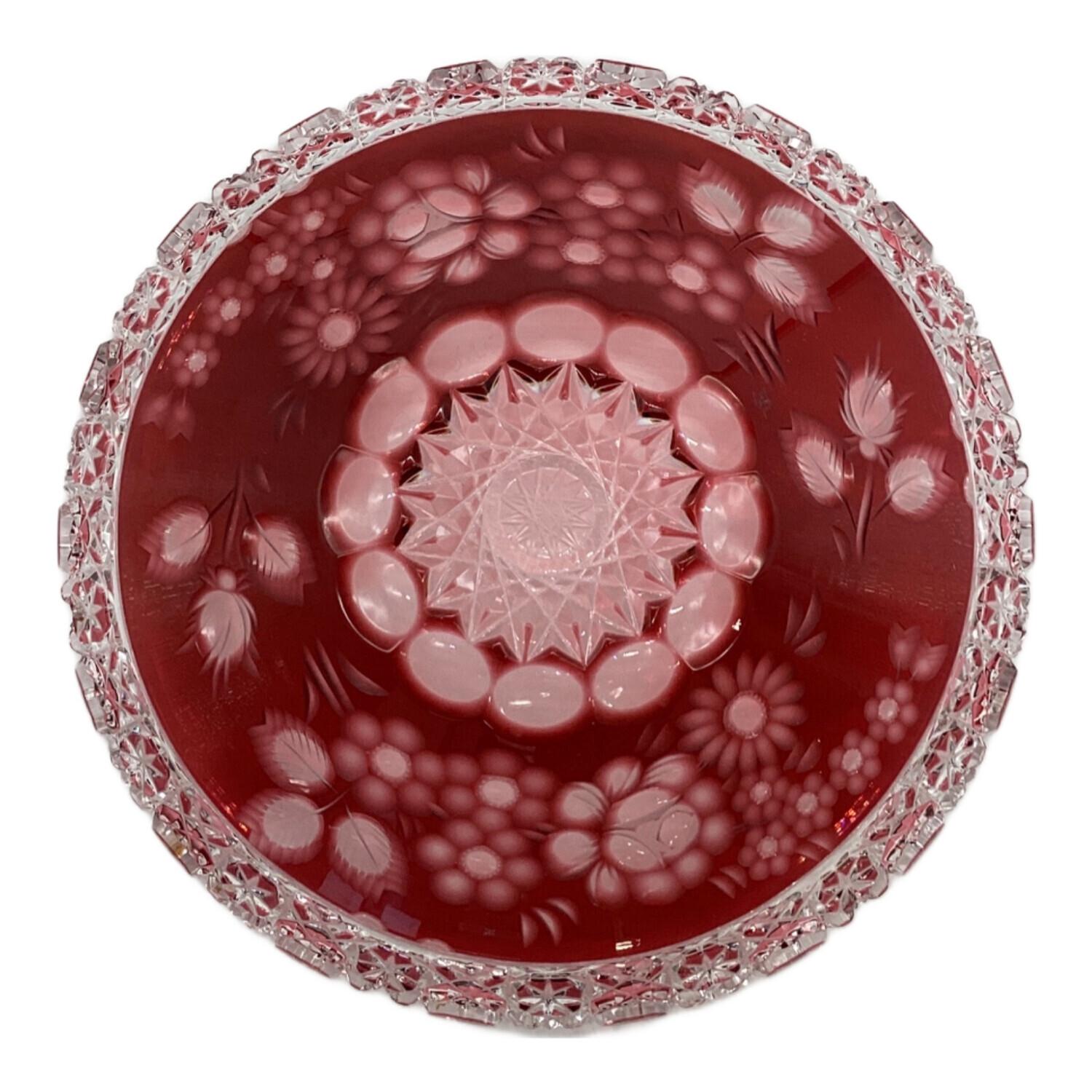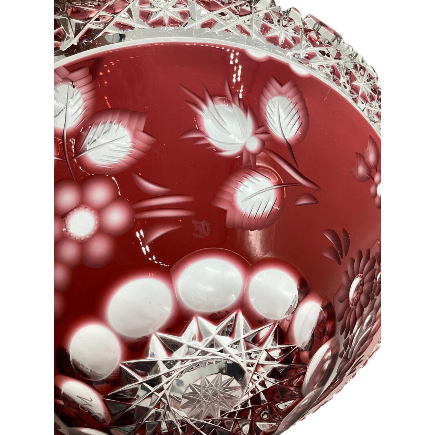 Meissener Bleikristall(マイセンクリスタル)マイセンフラワー 色被せボウル レッド 26㎝