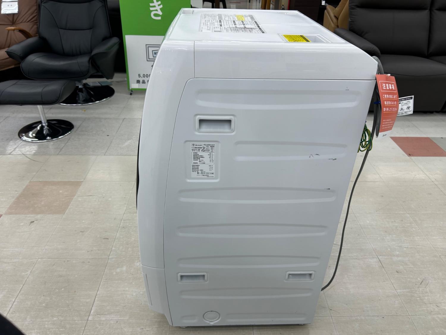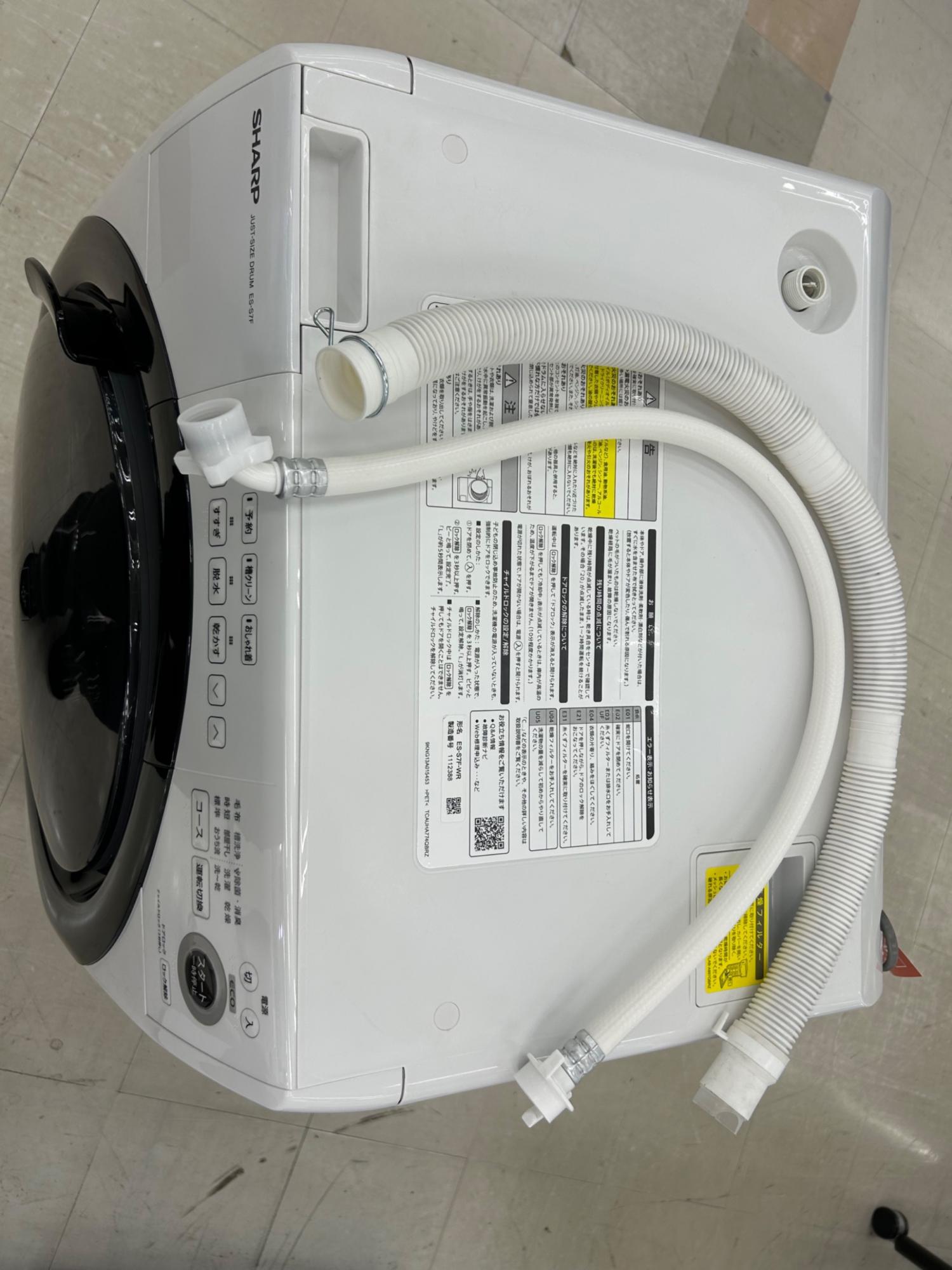 SHARP (シャープ) ドラム式洗濯乾燥機 右側キズ有 7.0kg 3.5㎏ ES-S7F 2021年製 クリーニング済 50Hz/60Hz