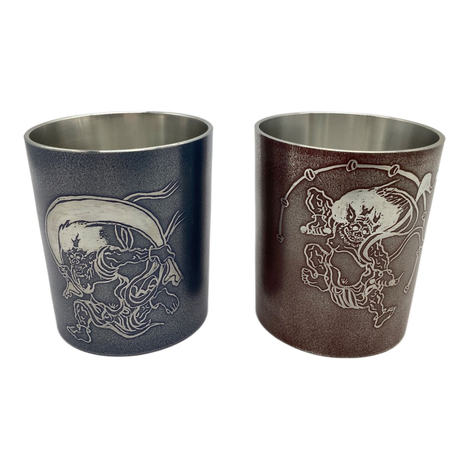 薩摩錫器 (サツマスズキ) 湯呑み揃え 風神雷神