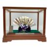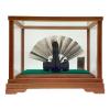 末廣 秀雄作 純銀仕上 扇子 松竹梅 高さ5寸 ※変色有・企業名有