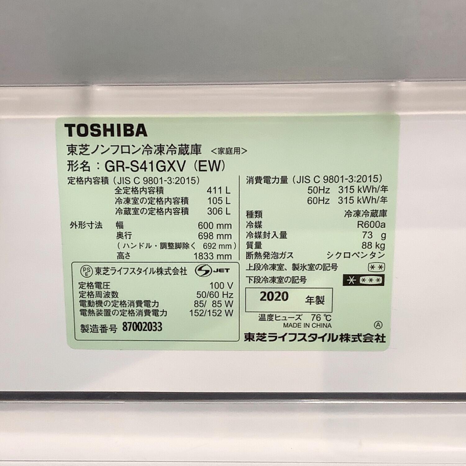 TOSHIBA (トウシバ) 5ドア冷蔵庫 GR-S41GXV 2020年製 411L