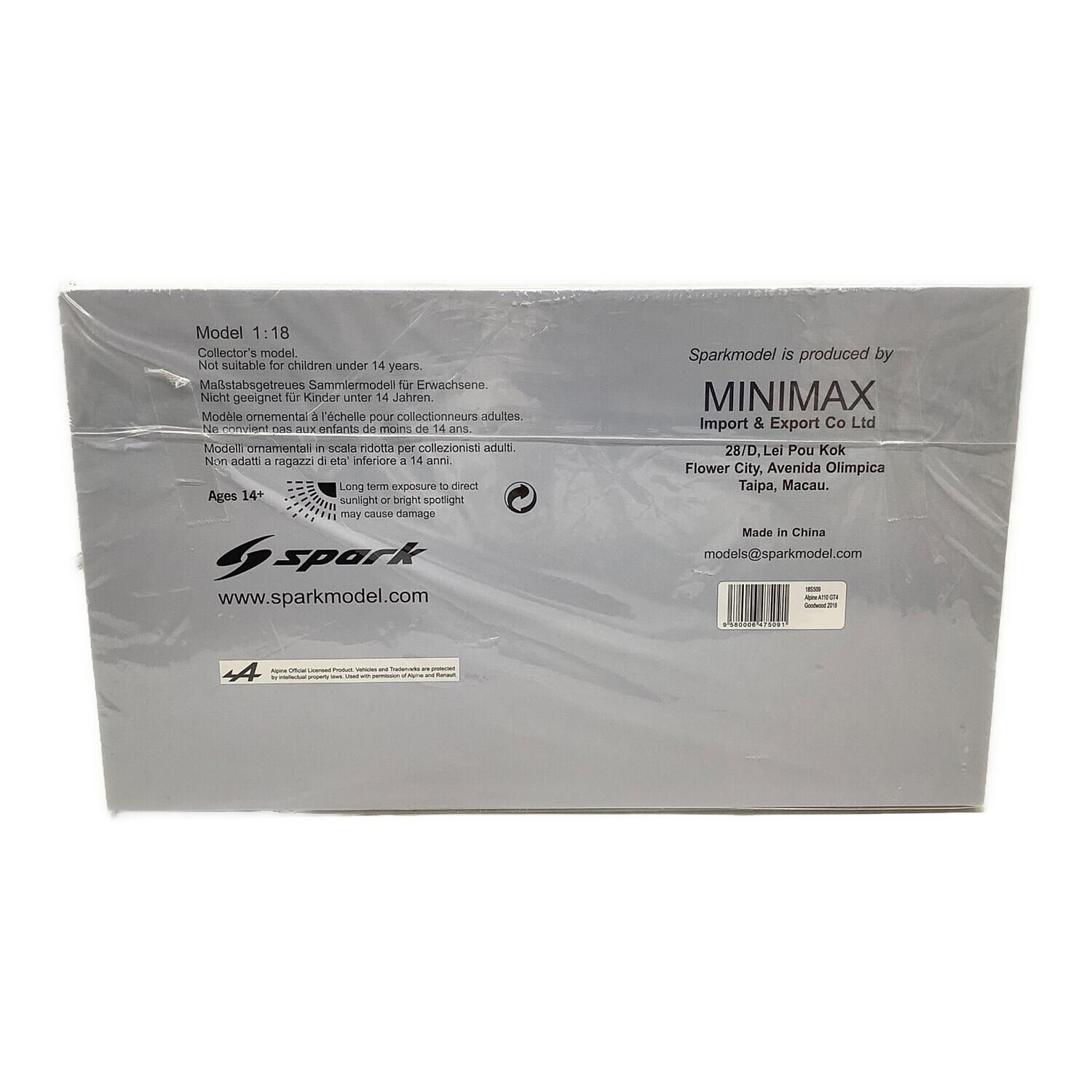 SPARK (スパーク) Alpine A110 GT4 Goodwood 2018 ミニカー 1/18