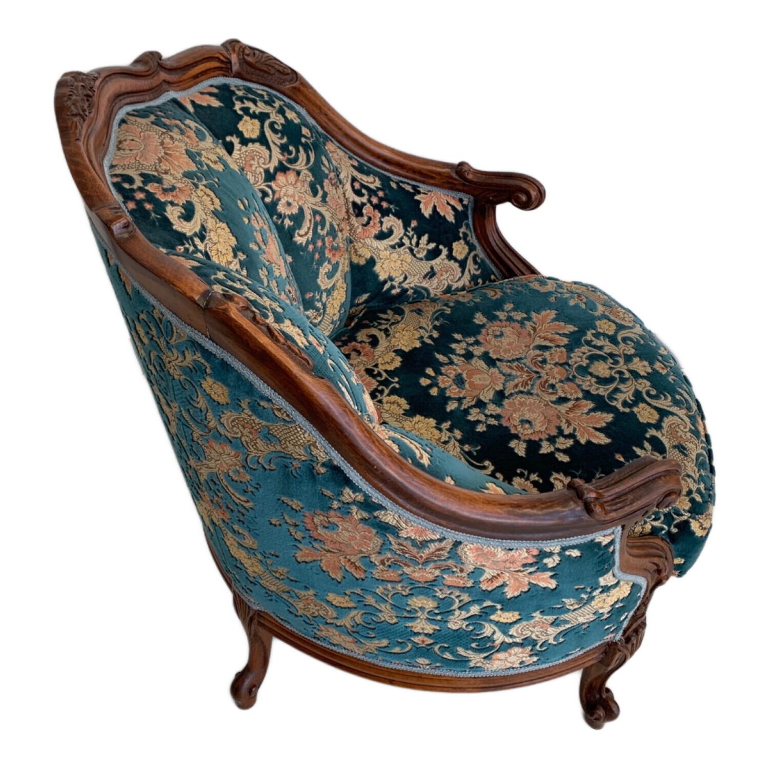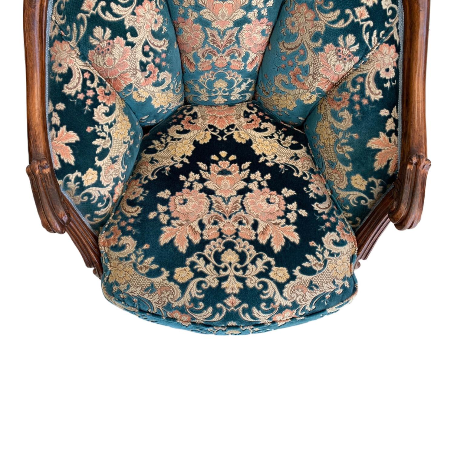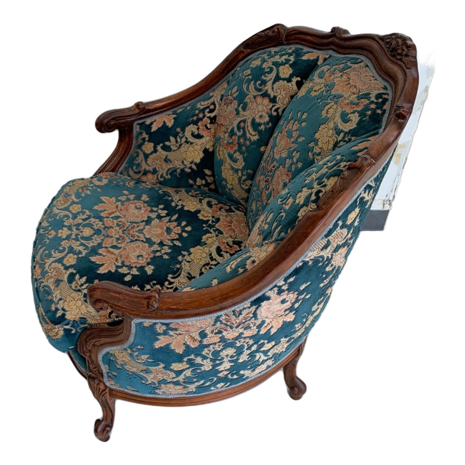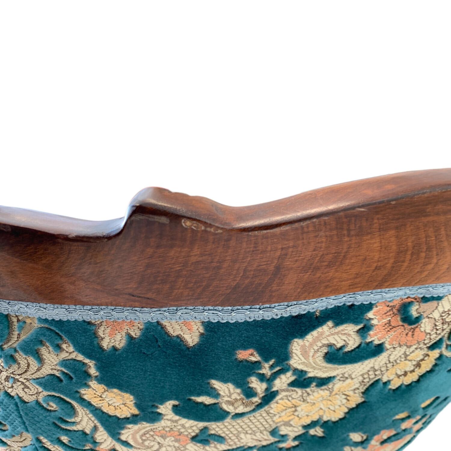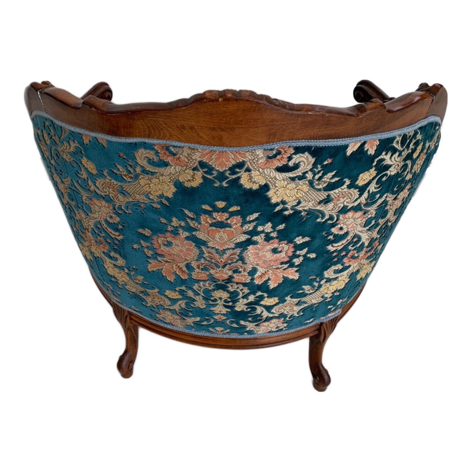 1人掛けソファー 金華山織 アンティーク風 ブルー×ブラウン