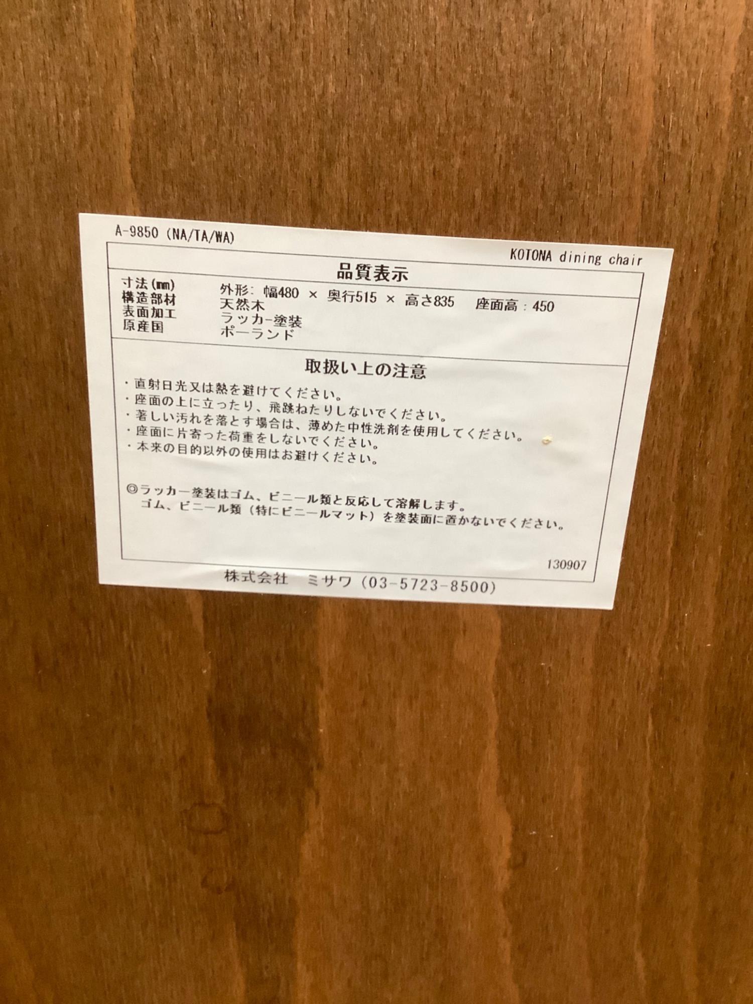 UNICO (ウニコ) ダイニングチェアー 85 ナチュラル KOTONA