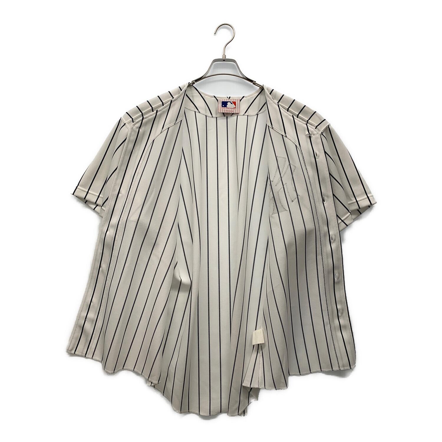 asics (アシックス) ベースボールシャツ メンズ SIZE XL ホワイト×ネイビー