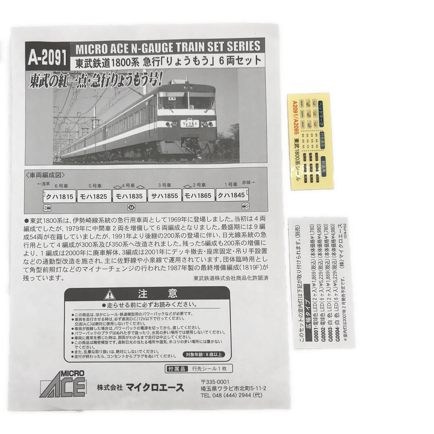 MICRO ACE (マイクロエース) Nゲージ 東武鉄道 1800系 急行 「りょうもう」6両 A-2091