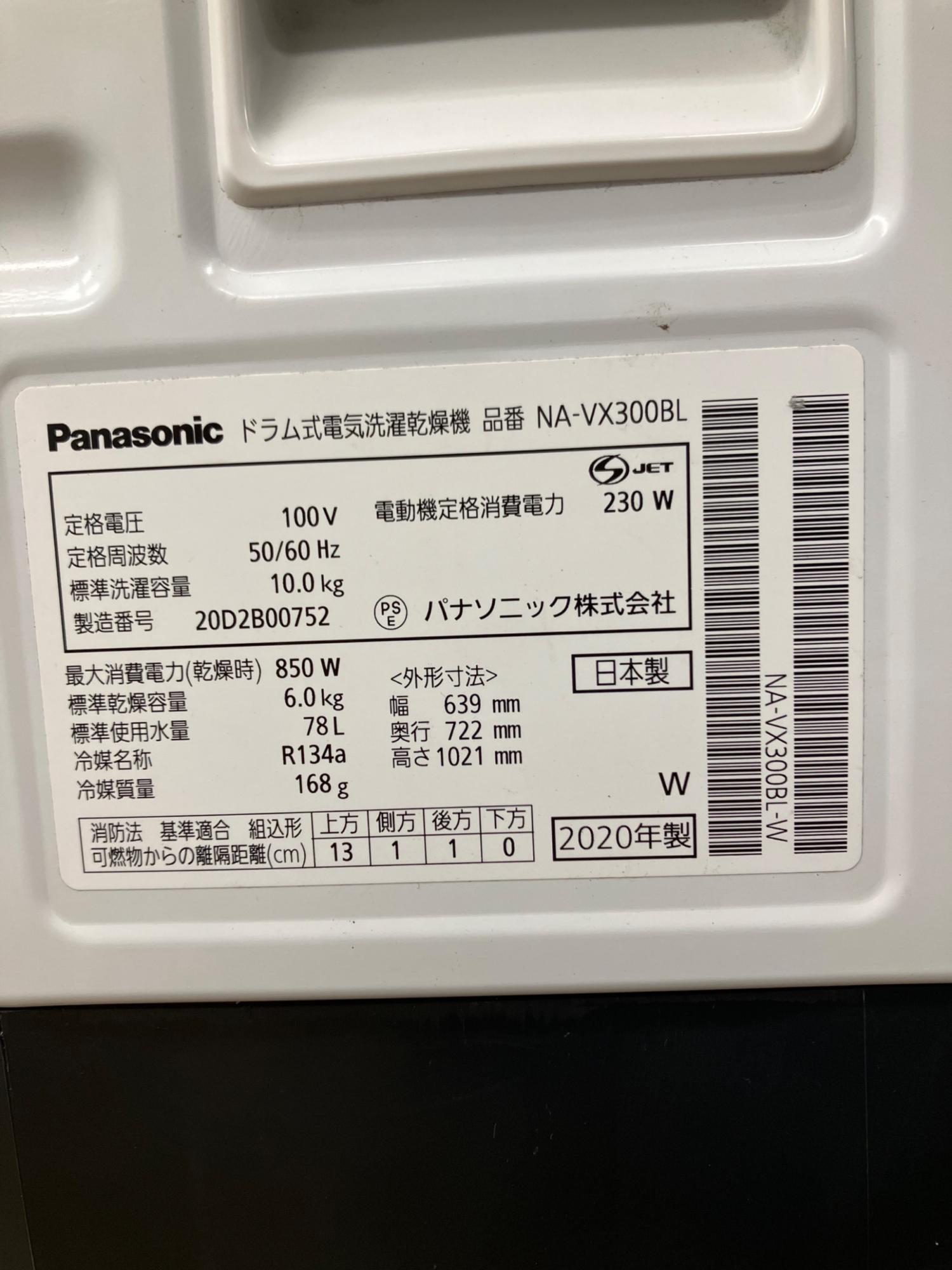 Panasonic (パナソニック) ドラム式洗濯乾燥機 NA-VX300BL 2020年製 ヨゴレ有